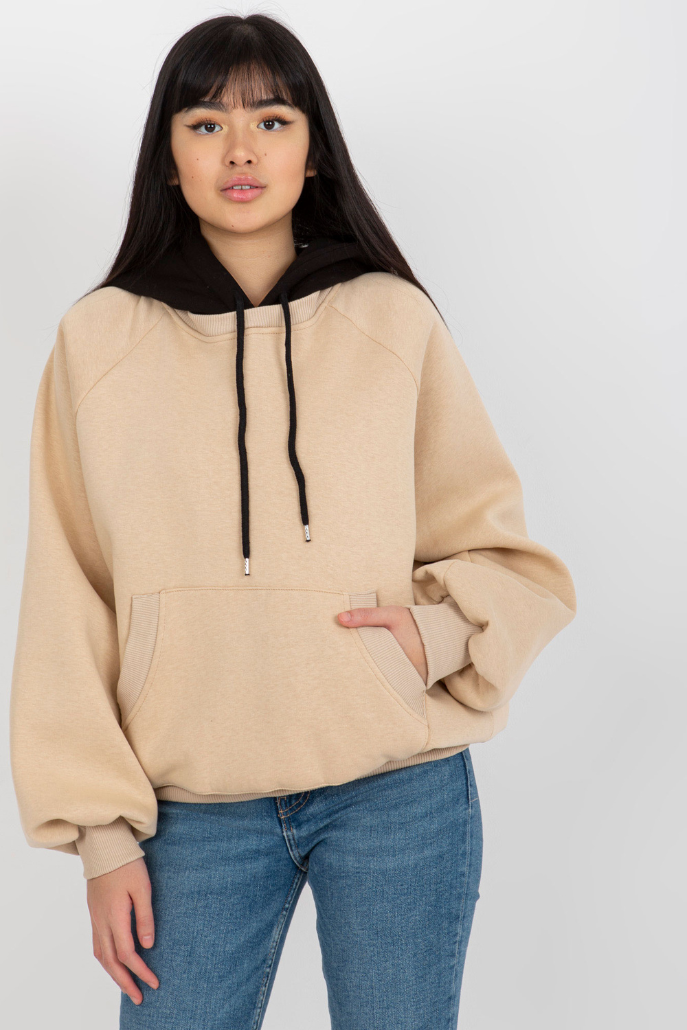 Smėlio ir juodos spalvos megztiniai su dideliu kirpimu.