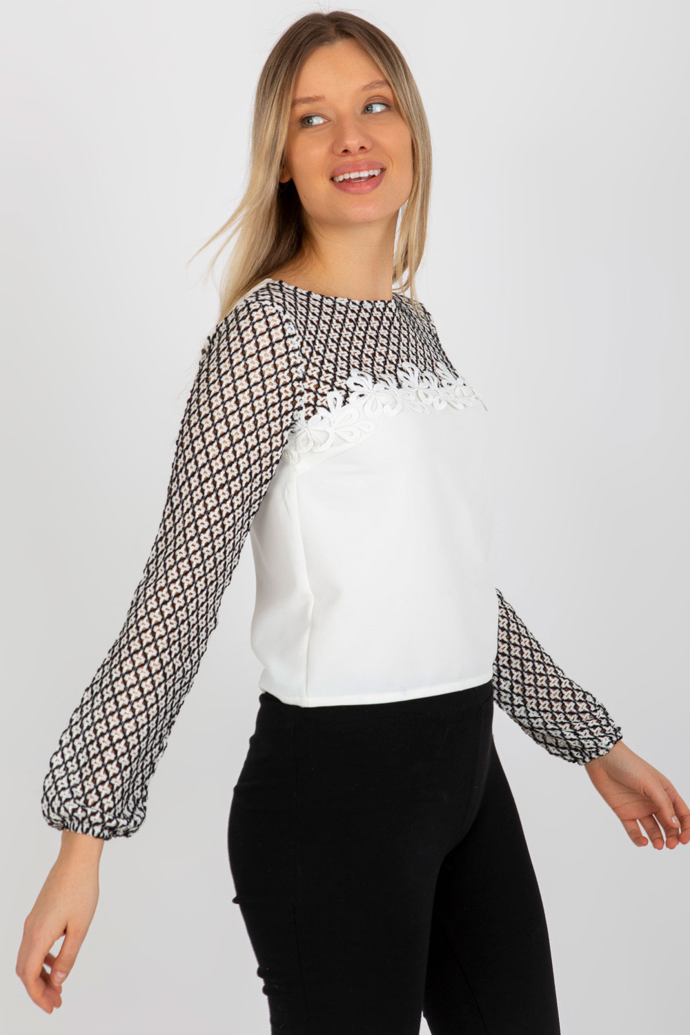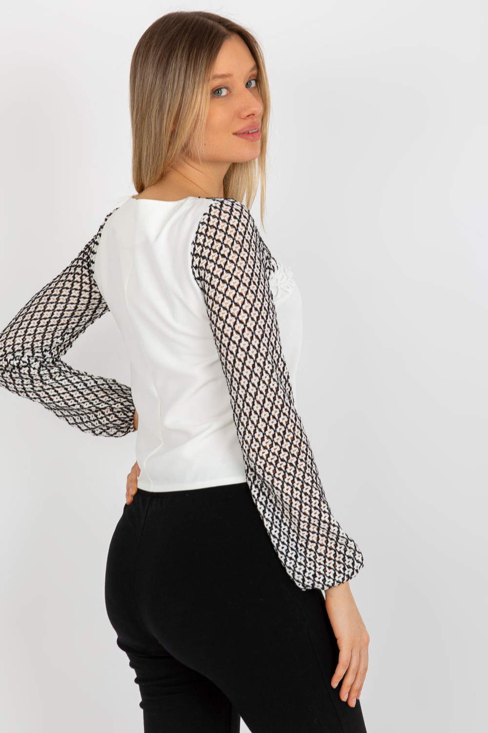 Ecru-juoda moteriška proginė palaidinė ilgomis rankovėmis.