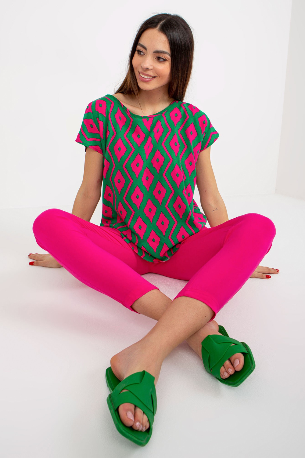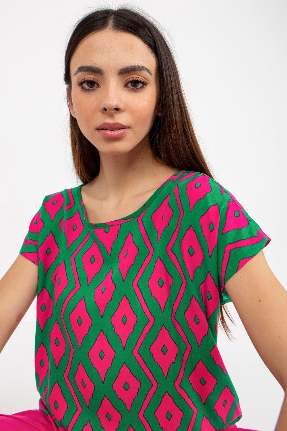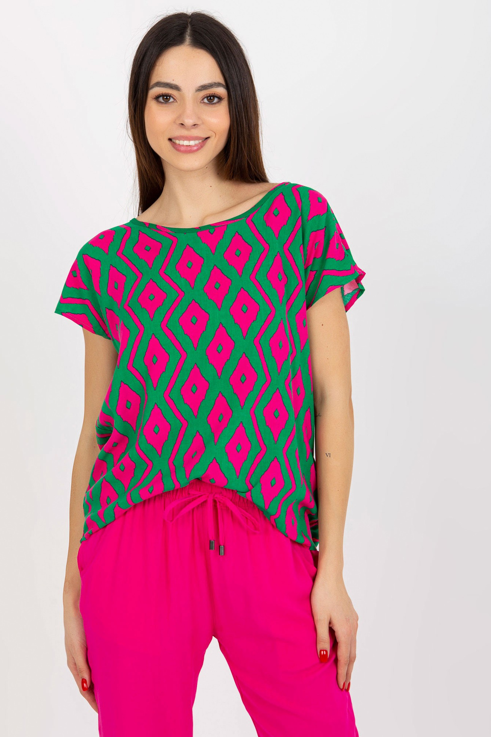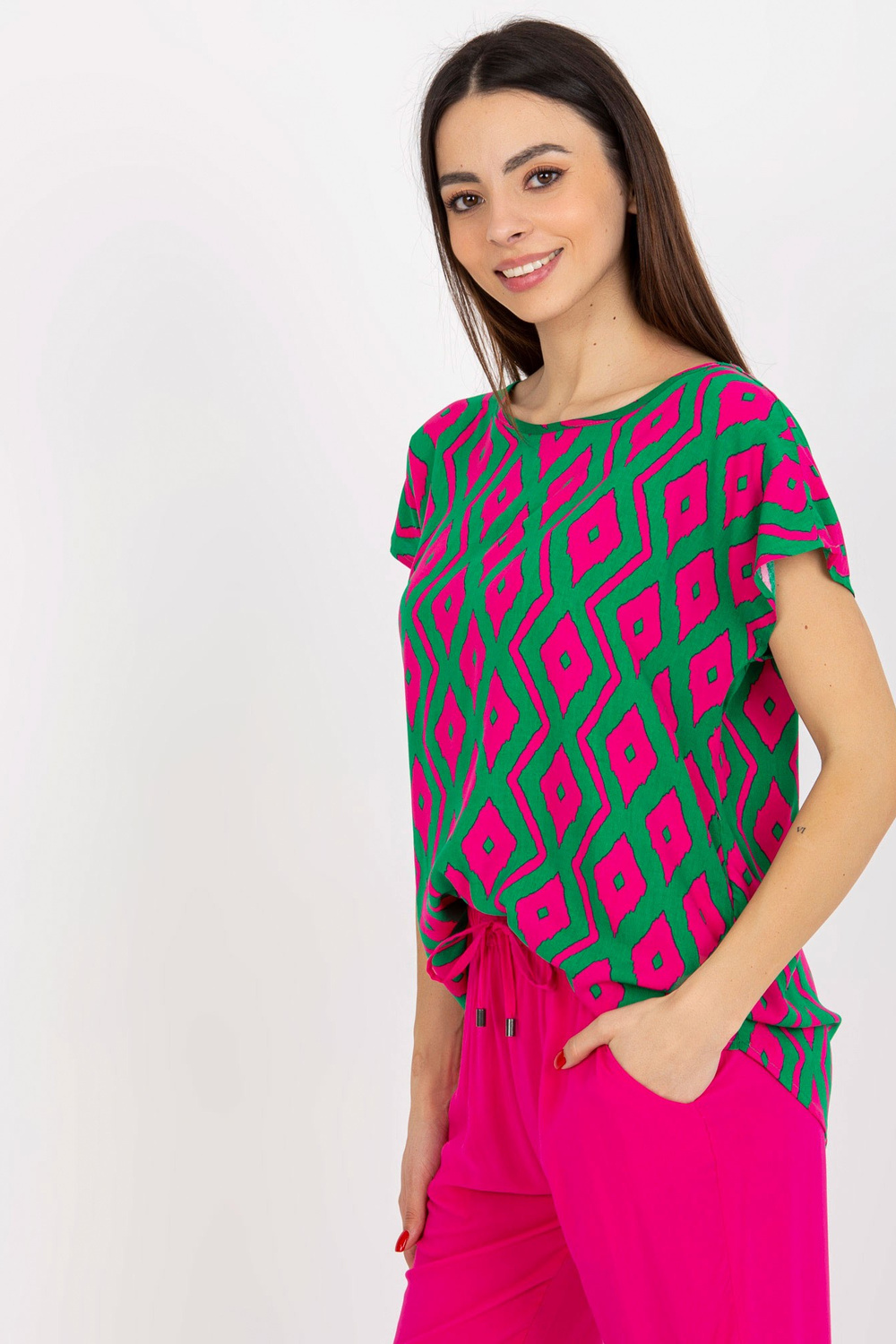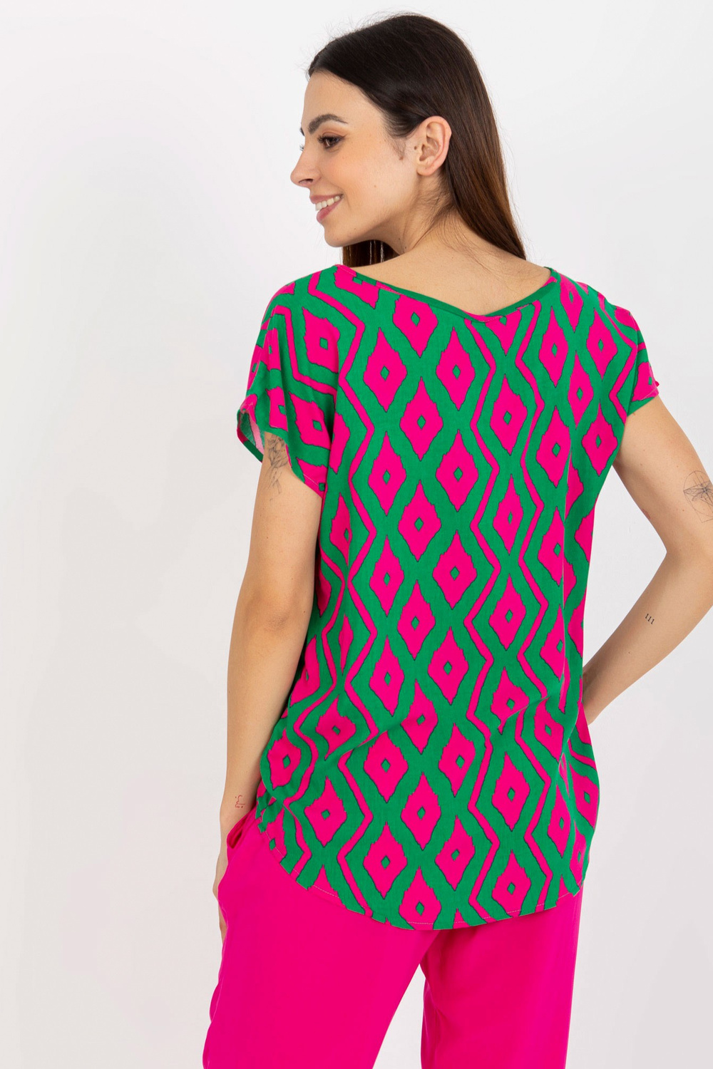 Žalia palaidinė su raštu ir trumpomis rankovėmis SUBLEVEL