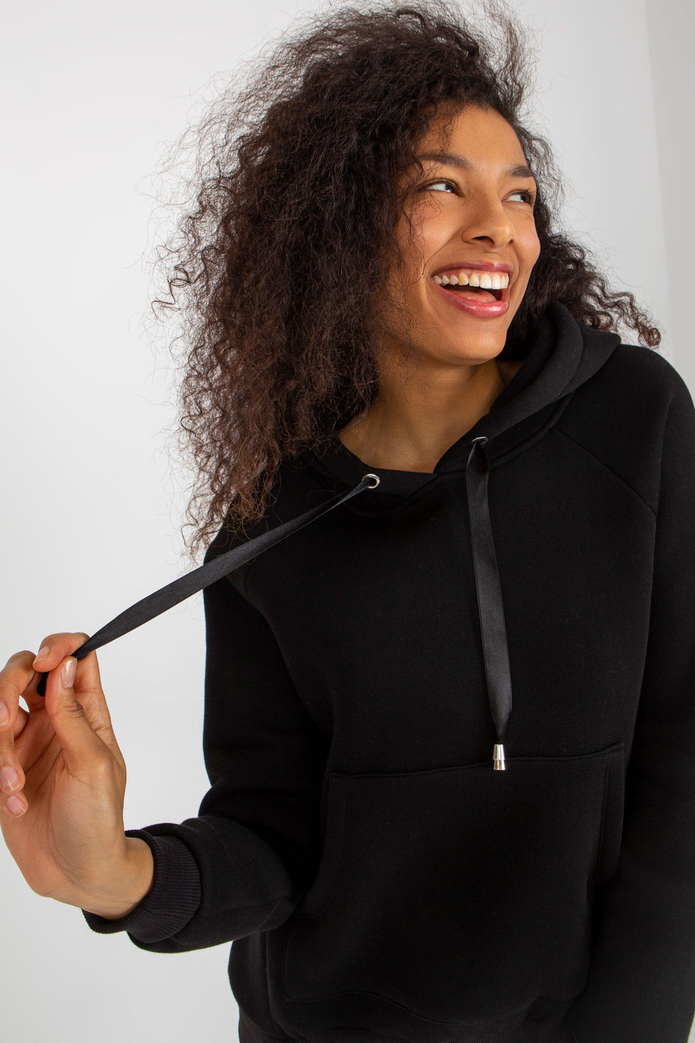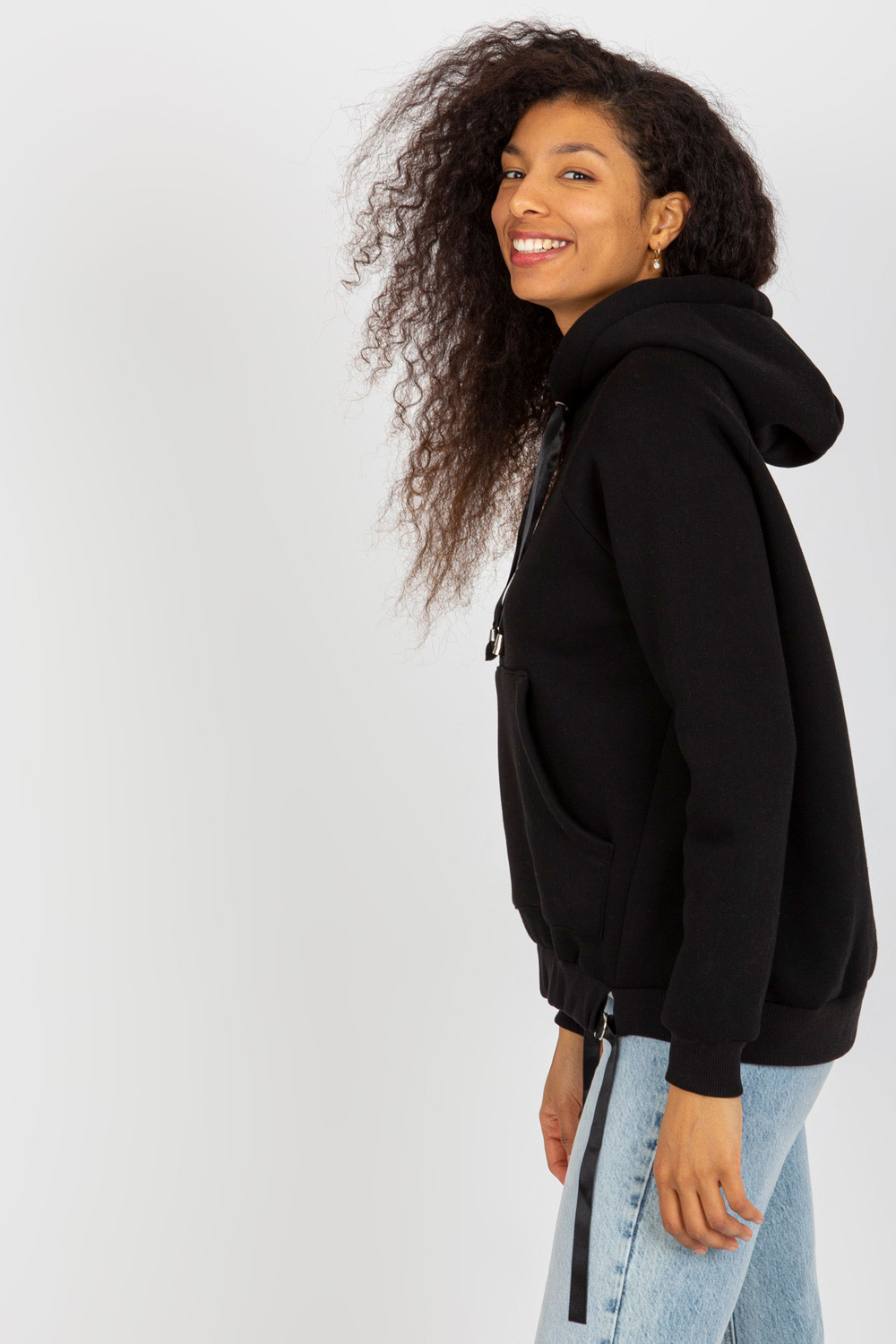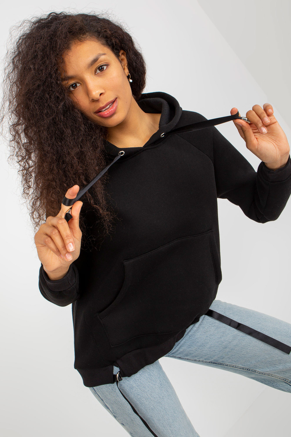 Juodas kengūros megztinis su gobtuvu OCH BELLA.