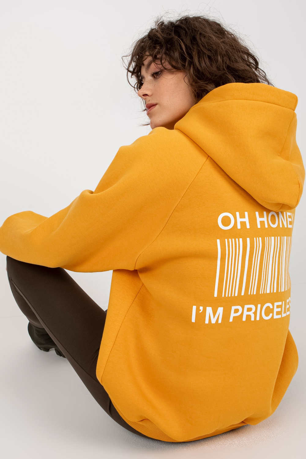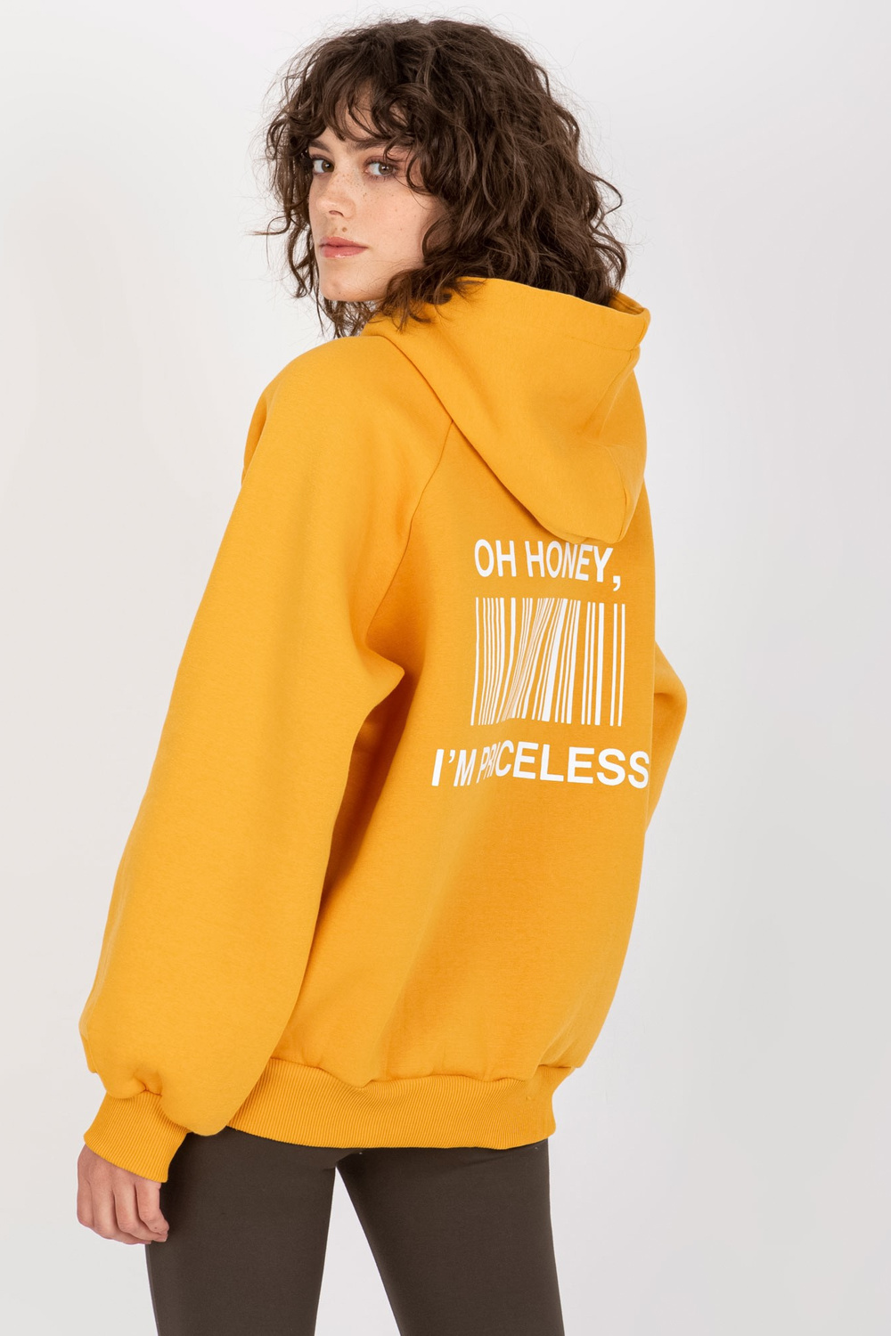 Tamsiai geltonas megztinis su raštu nugaroje. Prekės kodas: EM-BL-622.60 Dominuojantis raštas: print Stilius: sportiška proga: laisvalaikis, pasivaikščioti, į miestą Modelis dėvi vieno dydžio dydžius. Modelio matmenys: aukštis 177 cm, krūtinė 84 cm, juosmuo 62 cm,