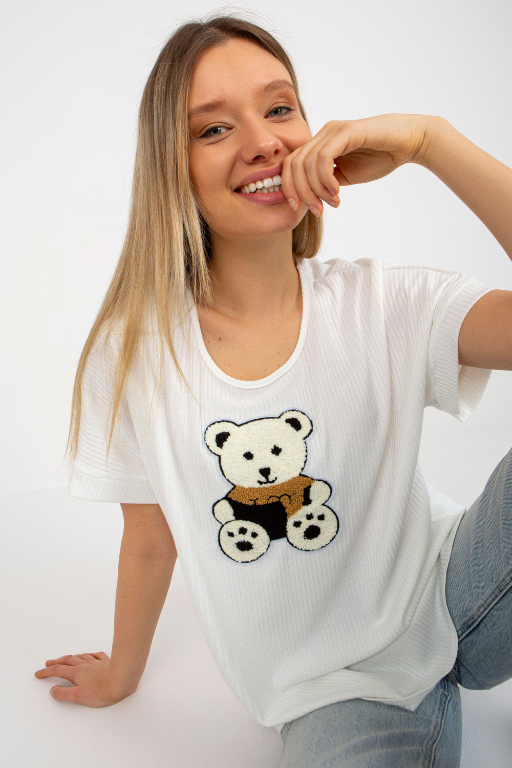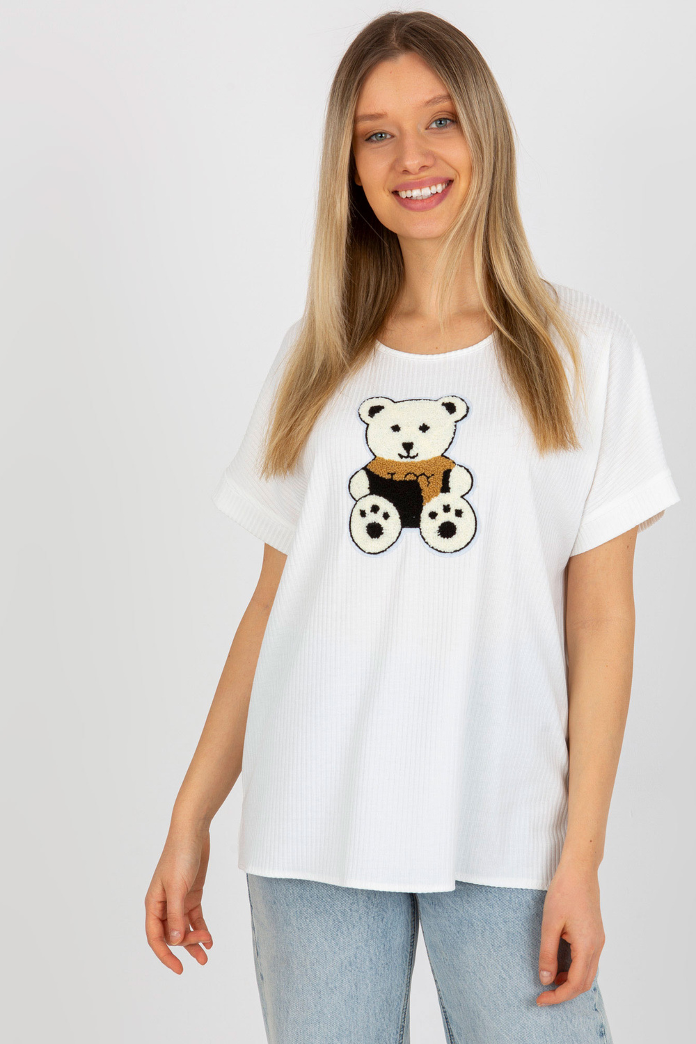 Negabaritinė palaidinė su briaunomis su meškiuku.