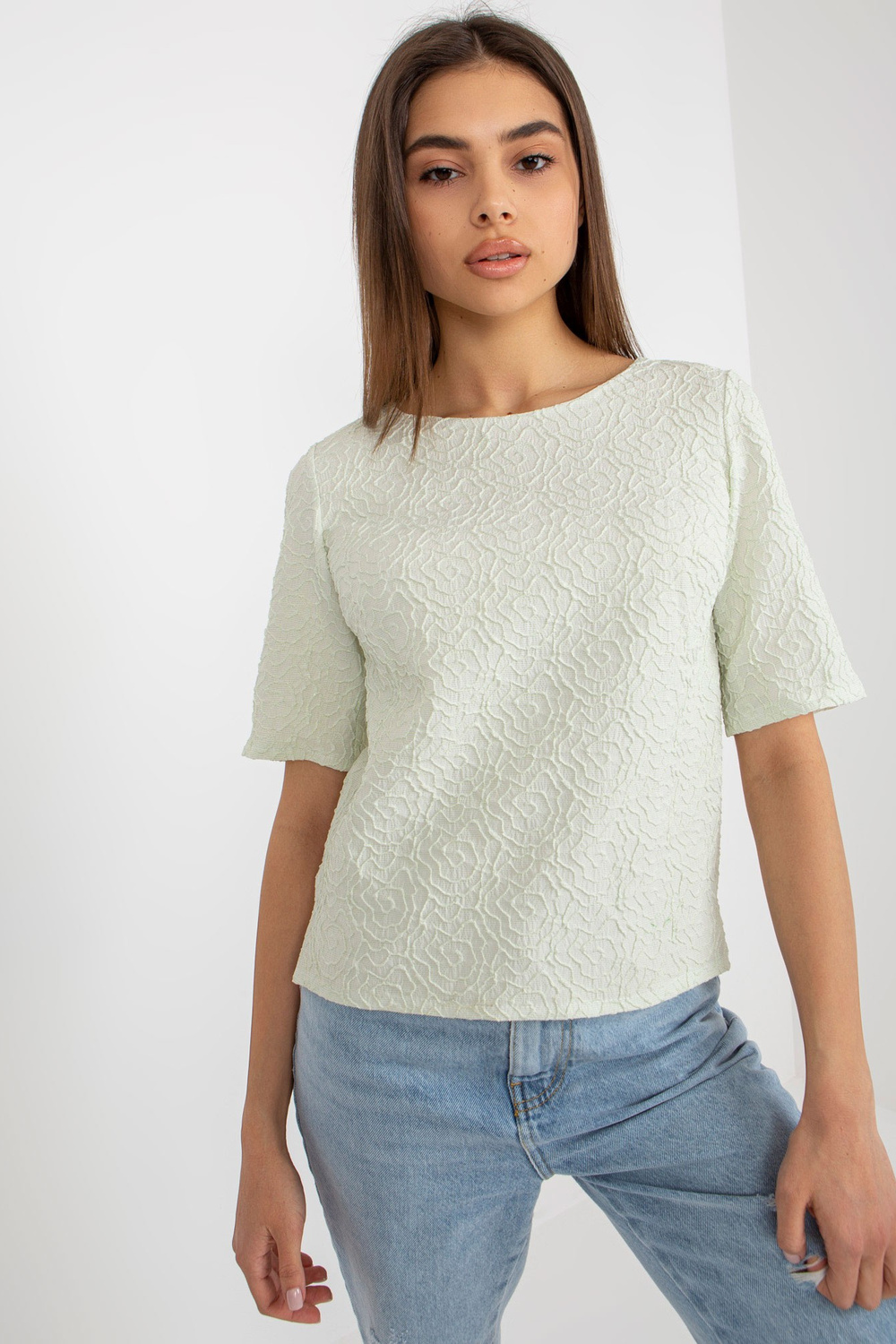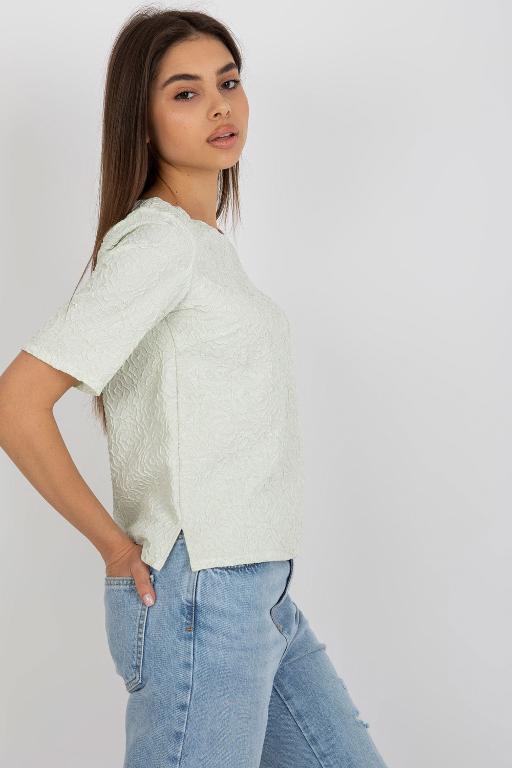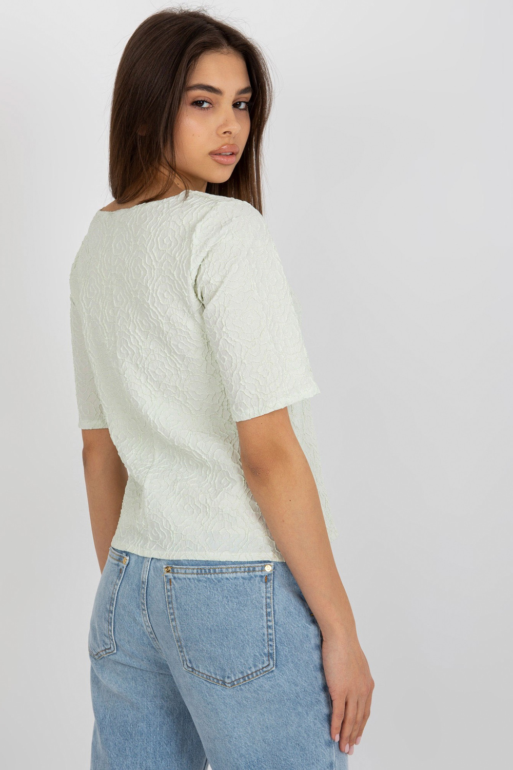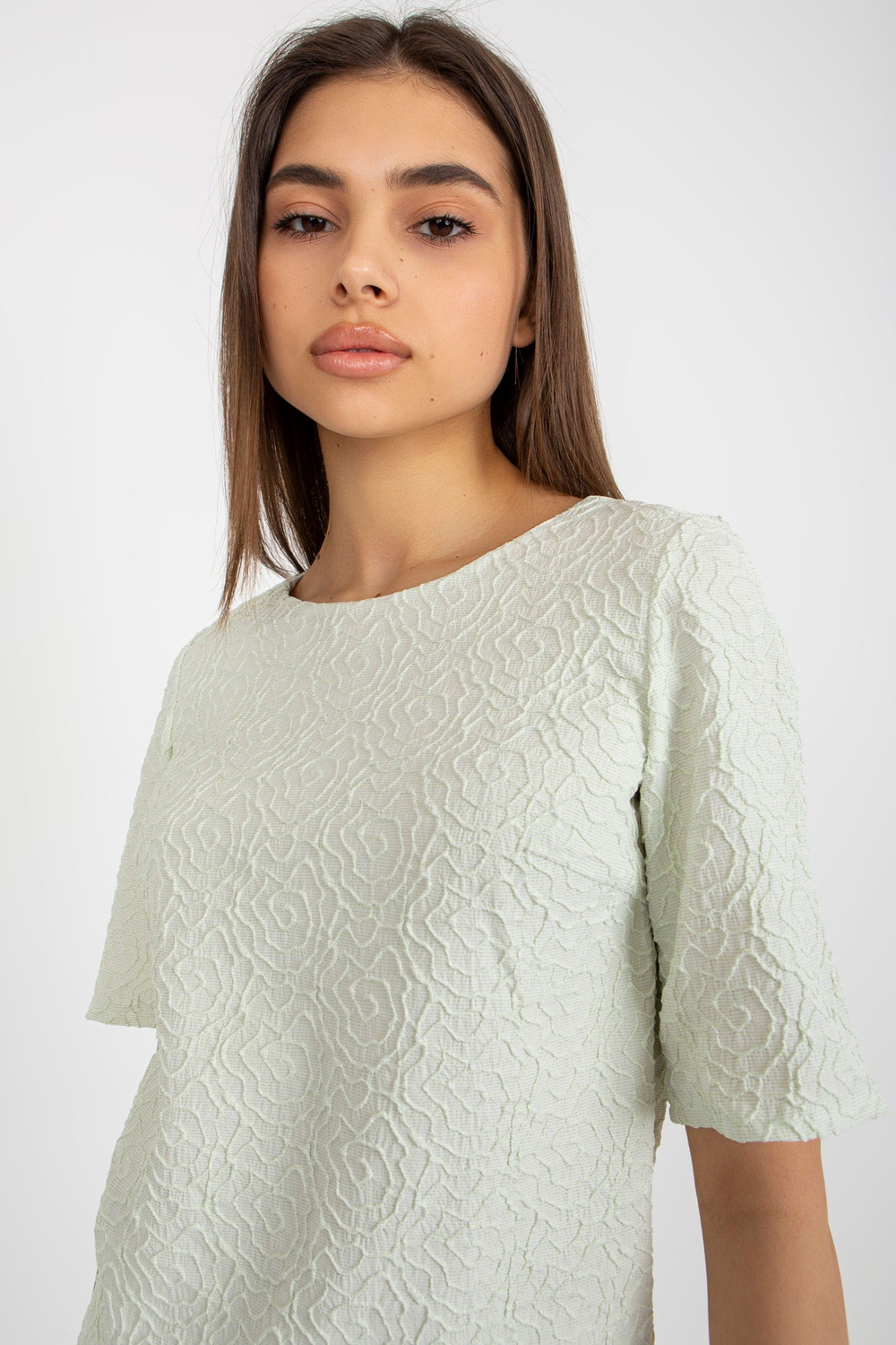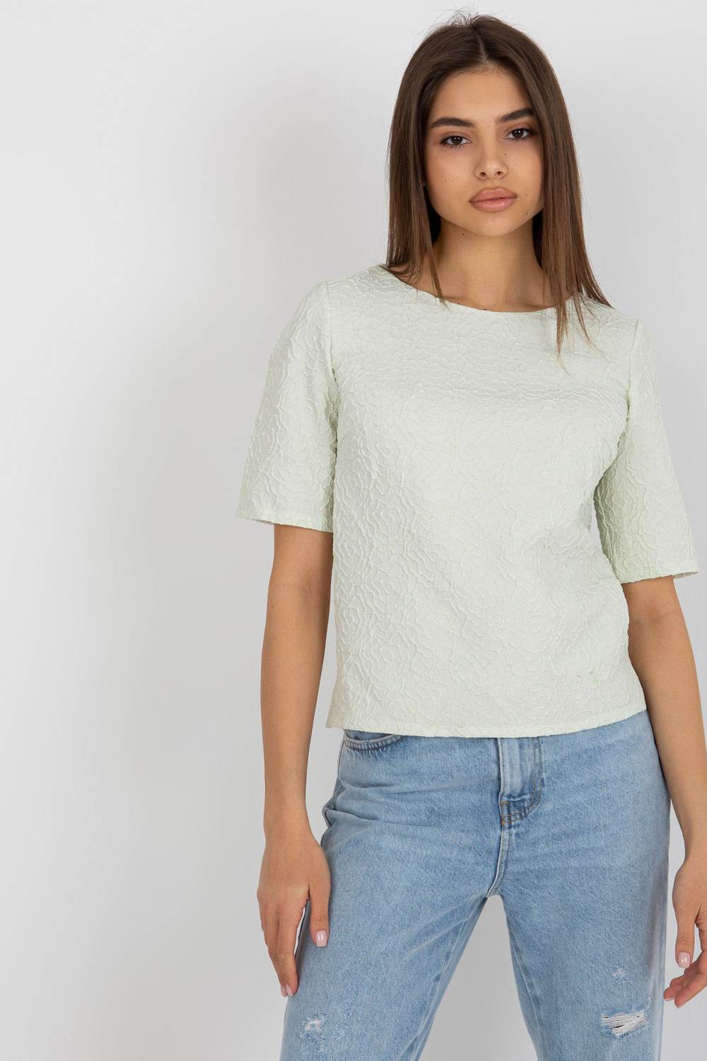 Šviesiai žalia iškilminga palaidinė trumpomis rankovėmis.