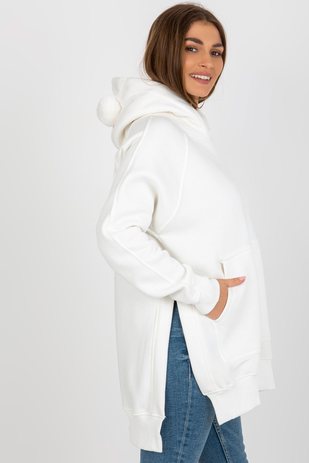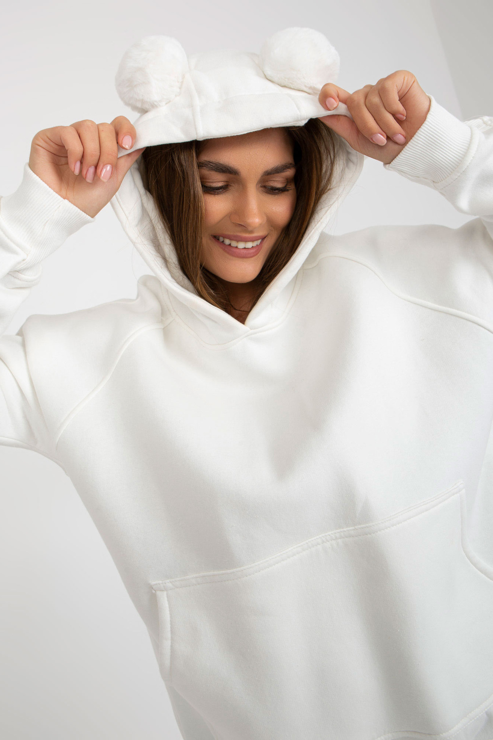 Modelis dėvi vieno dydžio dydį. Modelio išmatavimai: ūgis 170 cm, krūtinė 93 cm, juosmuo 66 cm, klubai 93 cm.