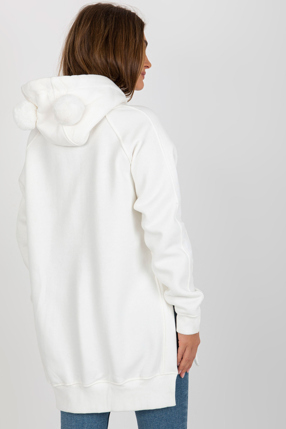Mezginio matmenys vieno dydžio, matuojamas plokščias: plotis po pažastimis - 64 cm, rankovių ilgis - 60 cm, bendras ilgis - 77 cm.