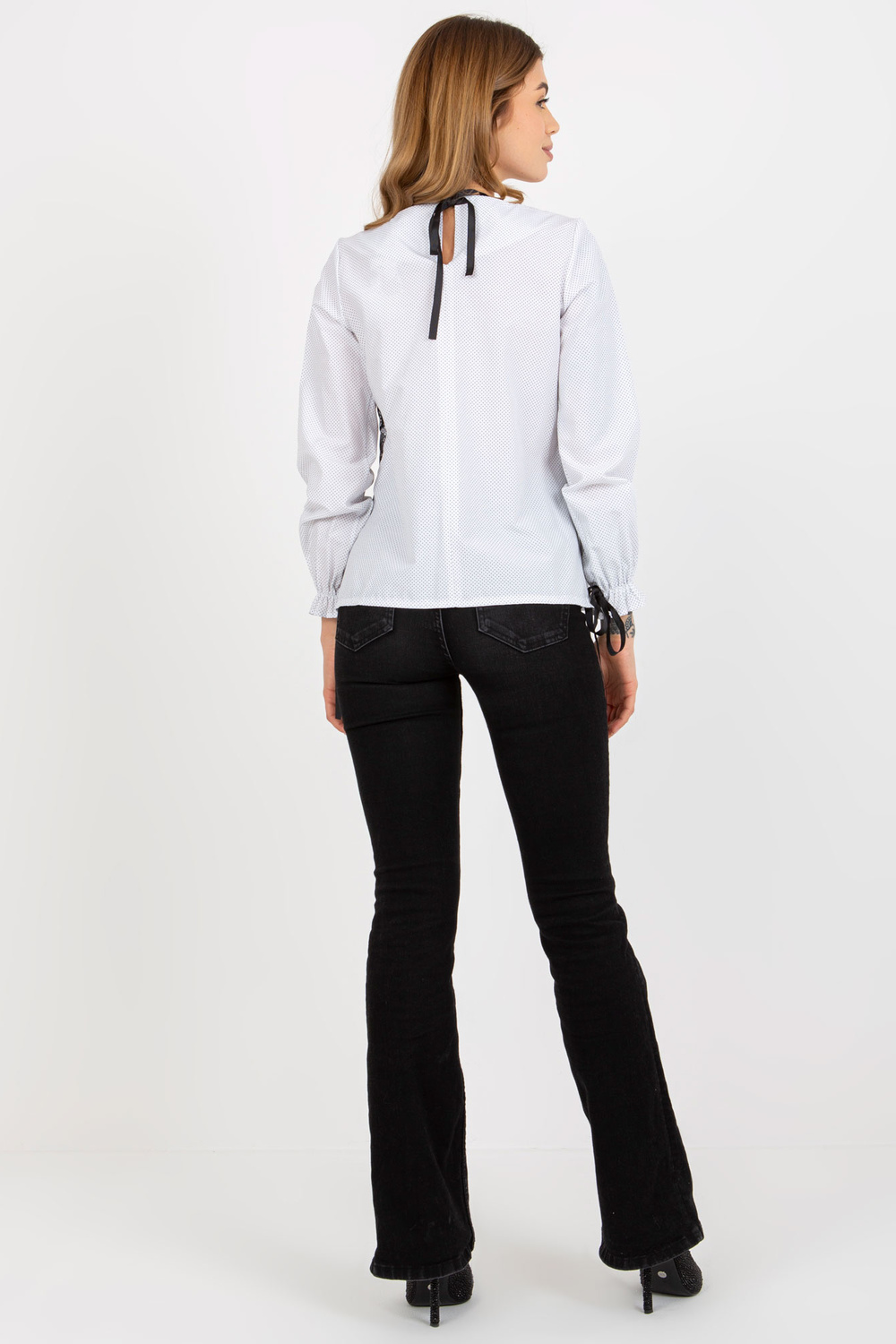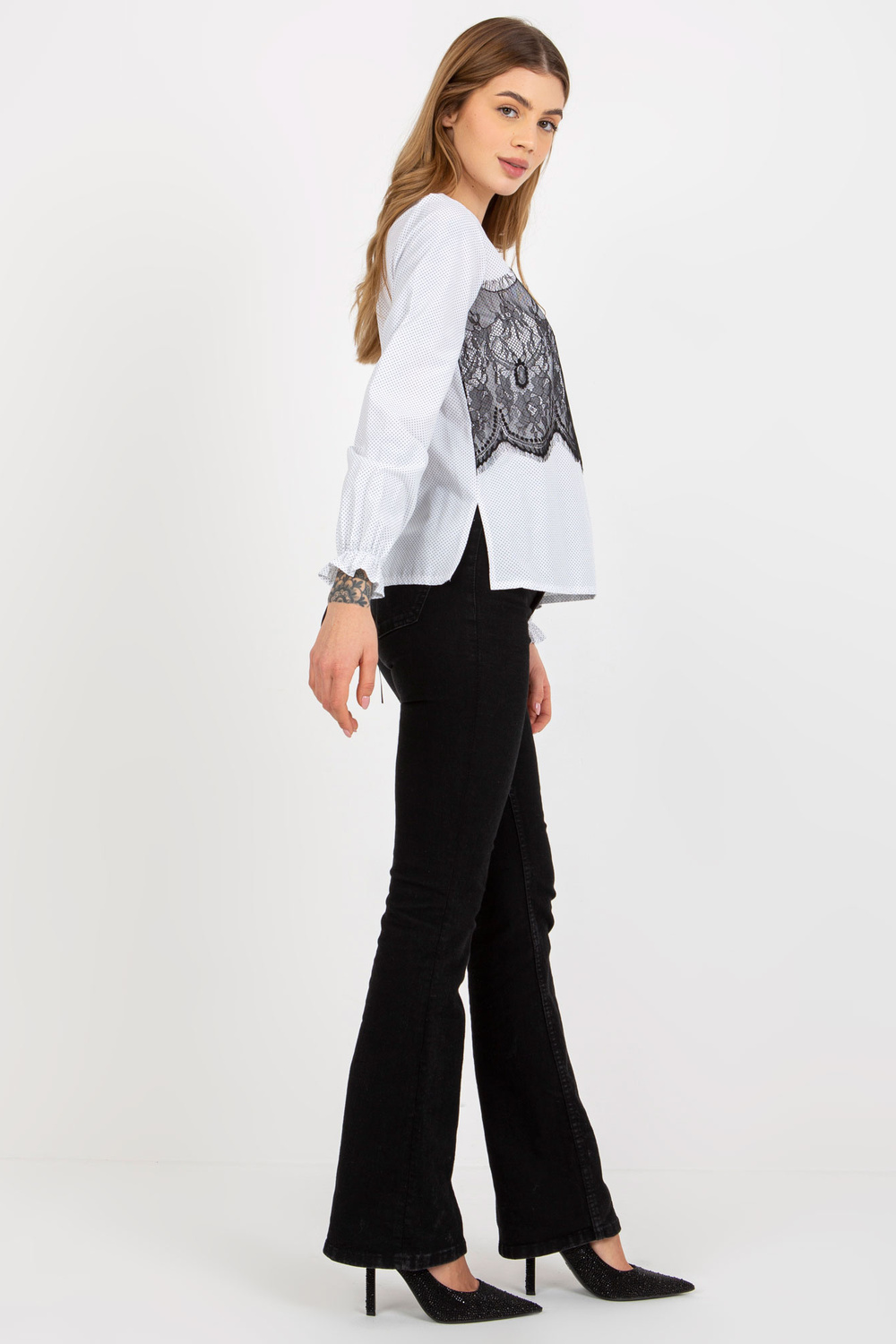 Balta ir juoda iškilminga palaidinė su taškeliais su nėriniais.