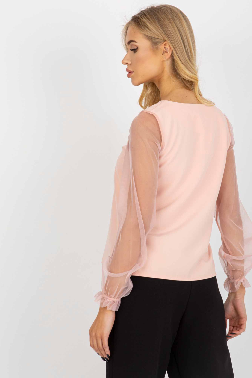 Persiko spalvos iškilminga palaidinė tinklinėmis rankovėmis.