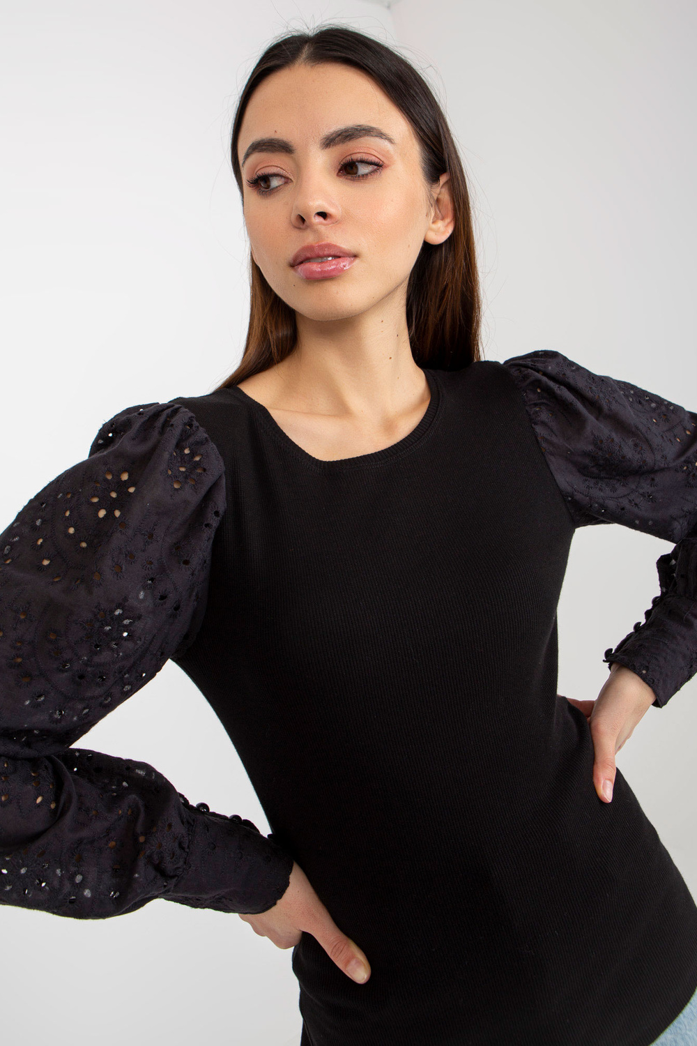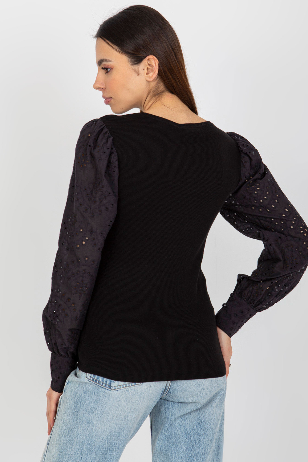 Juoda raištuota iškilminga palaidinė su dekoratyvinėmis rankovėmis OCH BELLA.