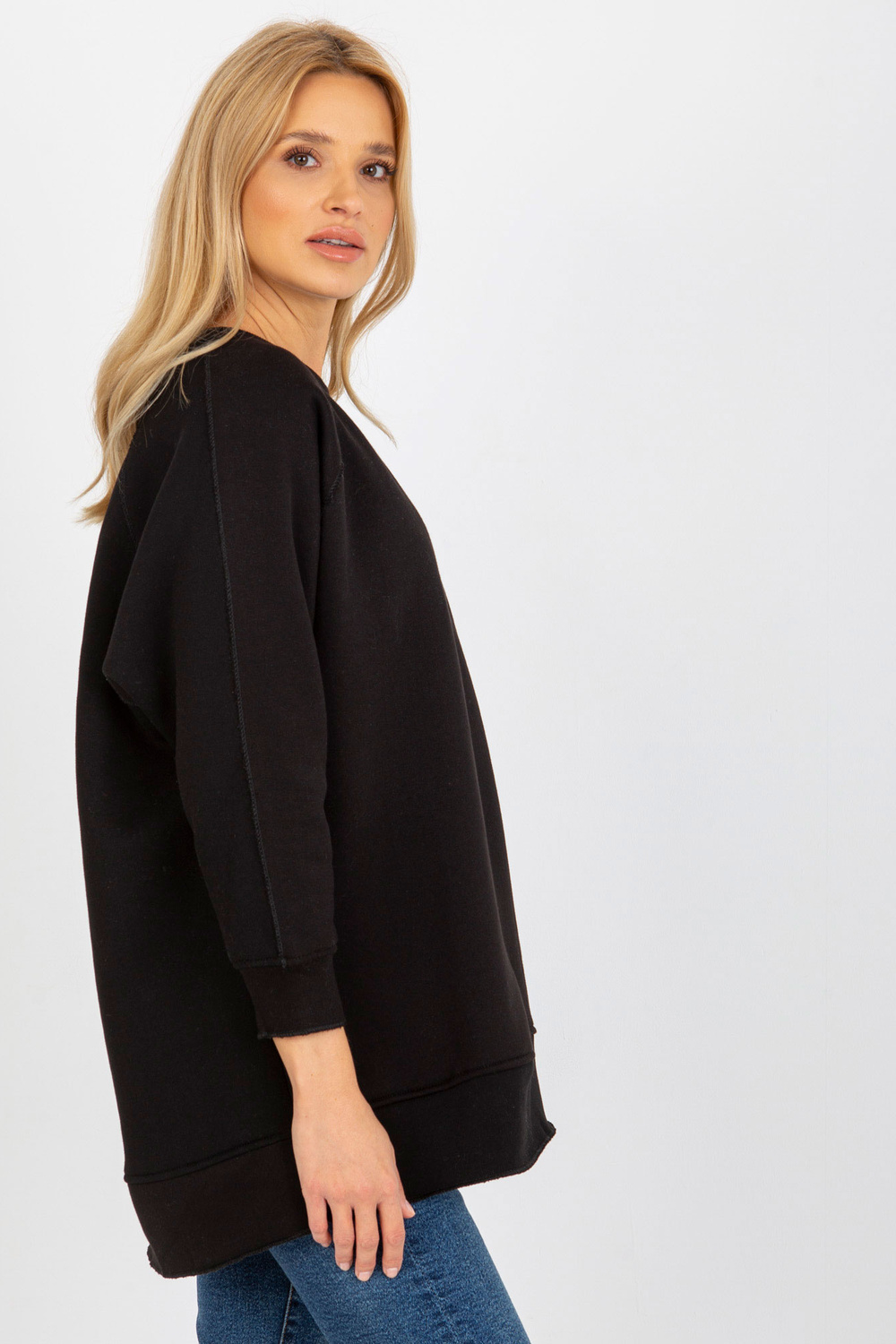 Vieno dydžio megztinio matmenys matuojami plokščiai: plotis po pažastimis - 67 cm, rankovių ilgis - 55 cm, bendras ilgis - 78 cm.