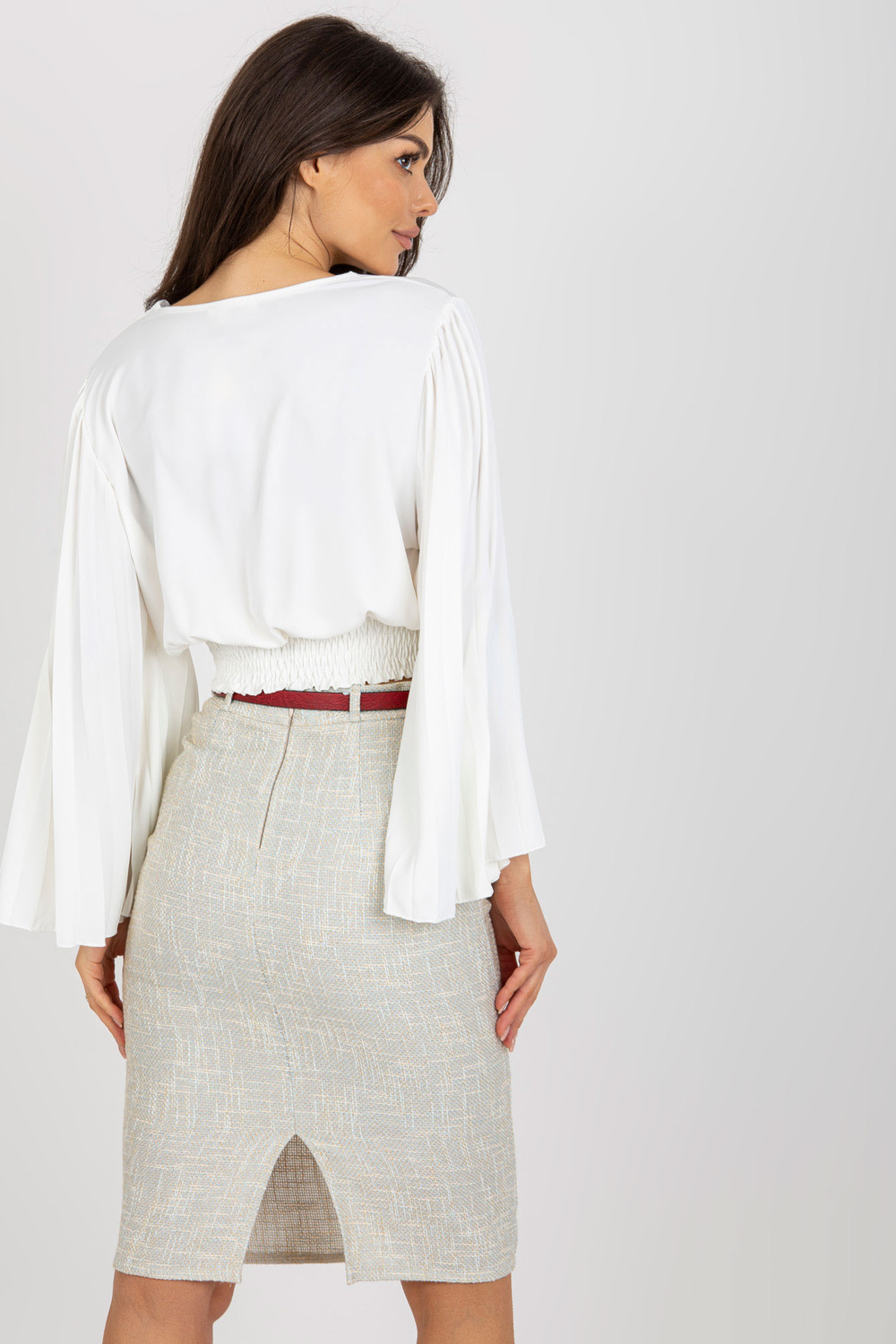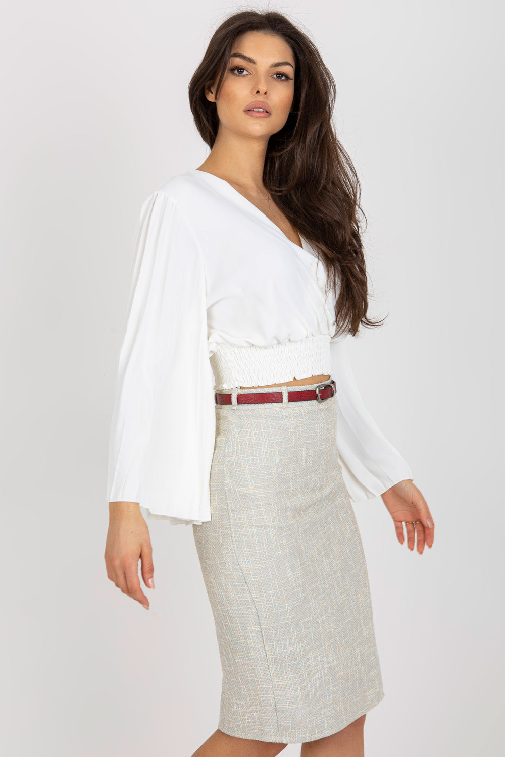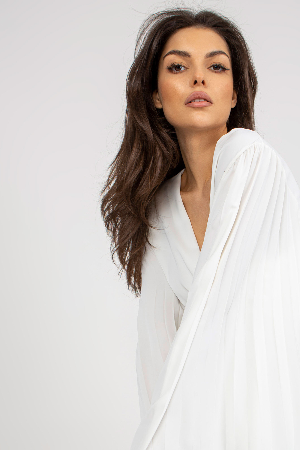 Ecru apvyniojama iškilminga palaidinė su raukiniais.