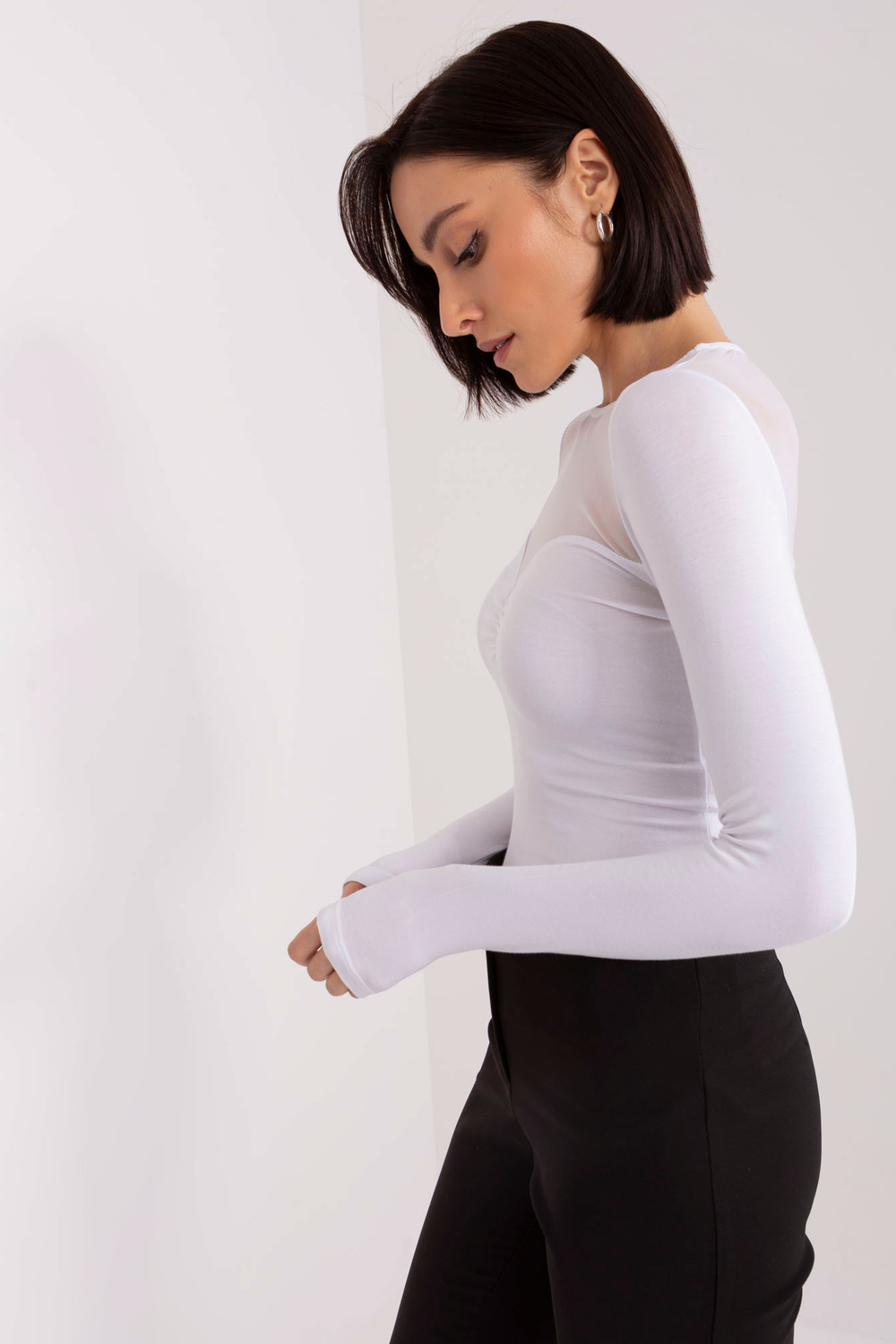Balta paprasta palaidinė ilgomis rankovėmis ir apvaliu kaklu BASIC FEEL GOOD.
