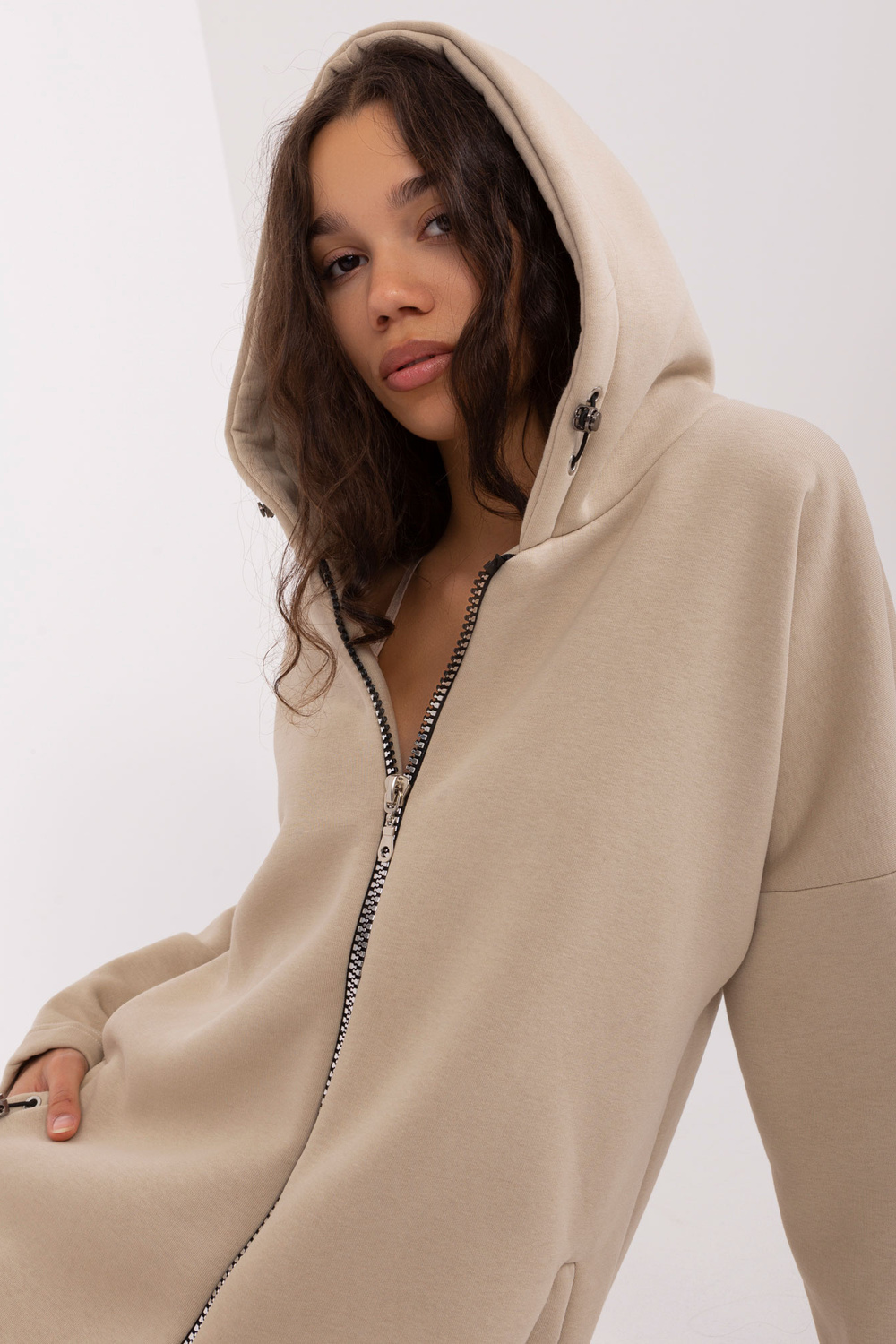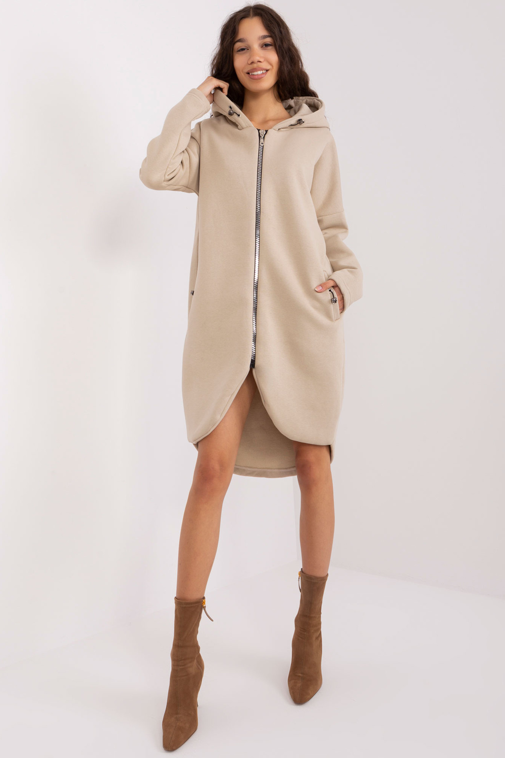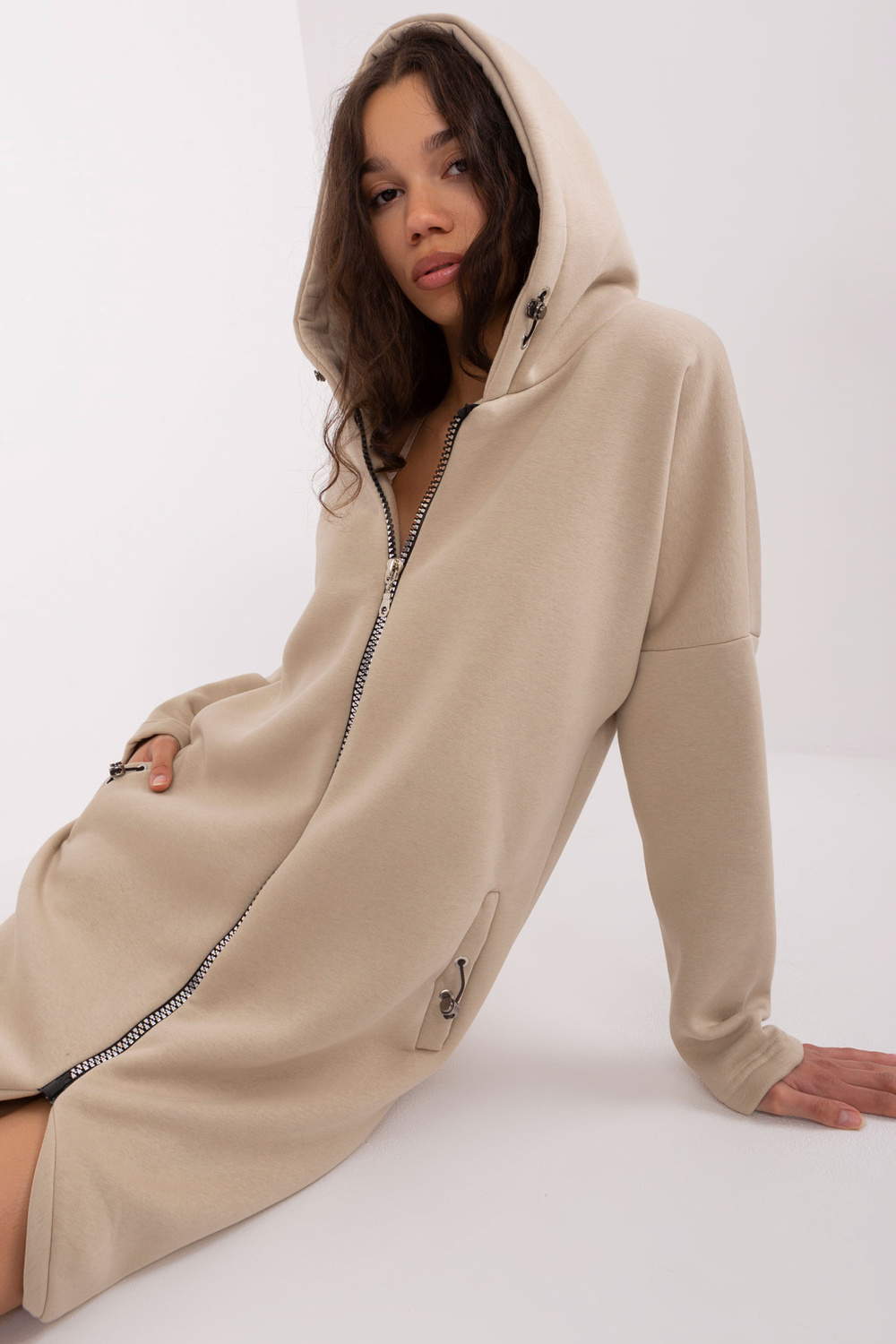 Smėlio spalvos ilgi baziniai megztiniai su užtrauktuku Tina RUE PARIS .
