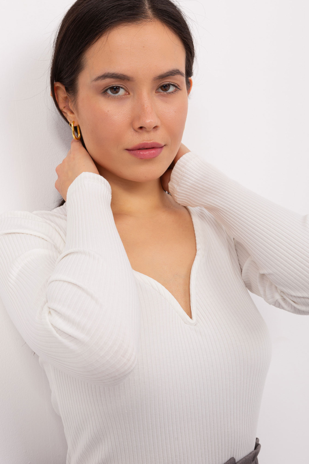 Ecru kasdienė dryžuota palaidinė BASIC FEEL GOOD .