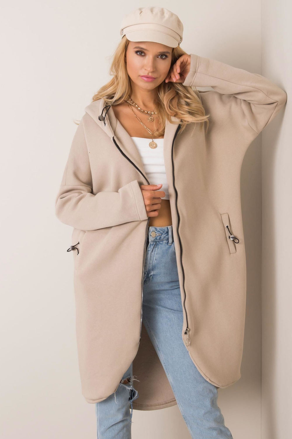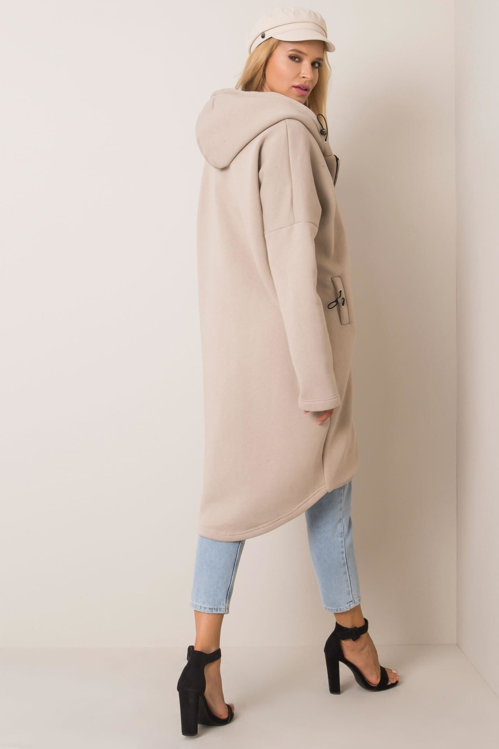 < p>Modelis dėvi S/M dydį. Modelio matmenys: aukštis 175 cm, krūtinė 84 cm, juosmuo 65 cm, klubai 92 cm.S/M dydžio megztinio matmenys, matuojami plokščiai: plotis po pažastimis - 63 cm, bendras ilgis - 98 cm, rankovių ilgis - 61 cm