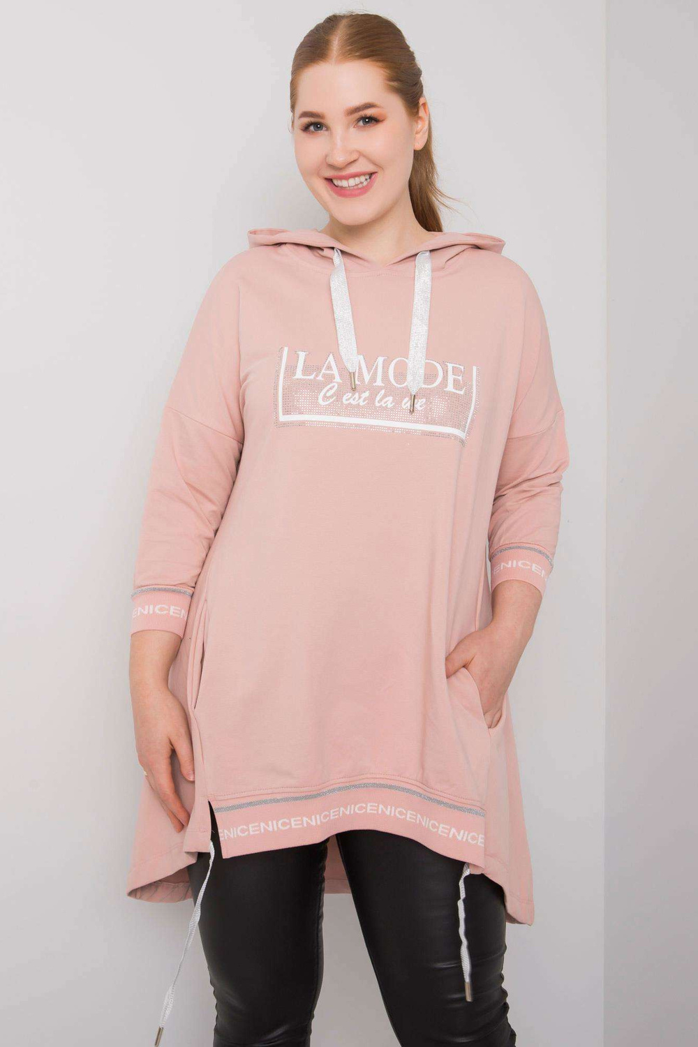 p>Modelis dėvi vieno dydžio dydį. Modelio matmenys: aukštis 175 cm, krūtinė 98 cm, juosmuo 76 cm, klubai 117 cm.