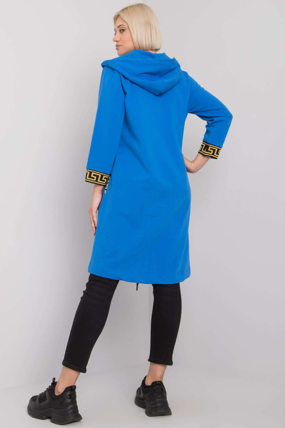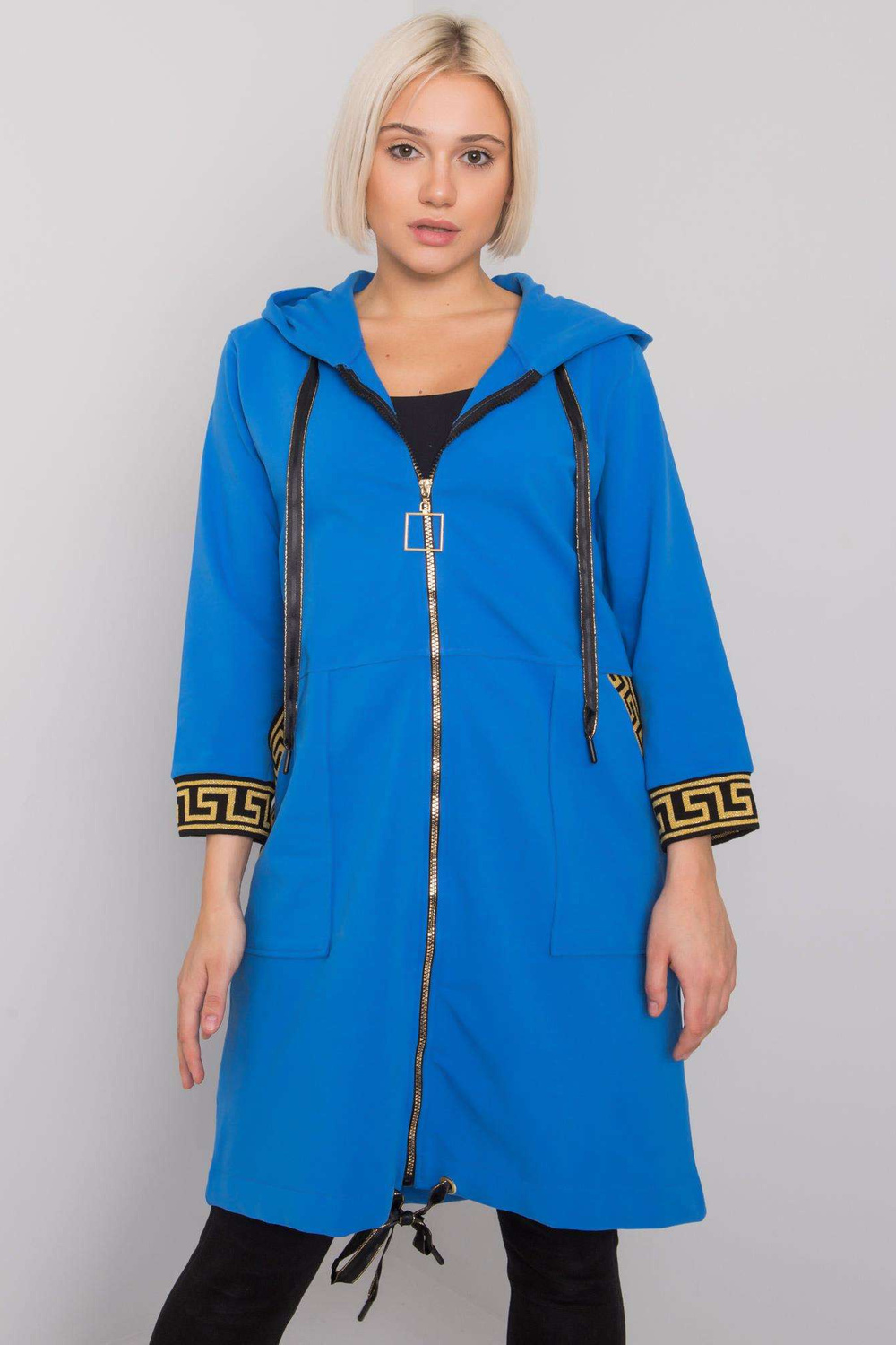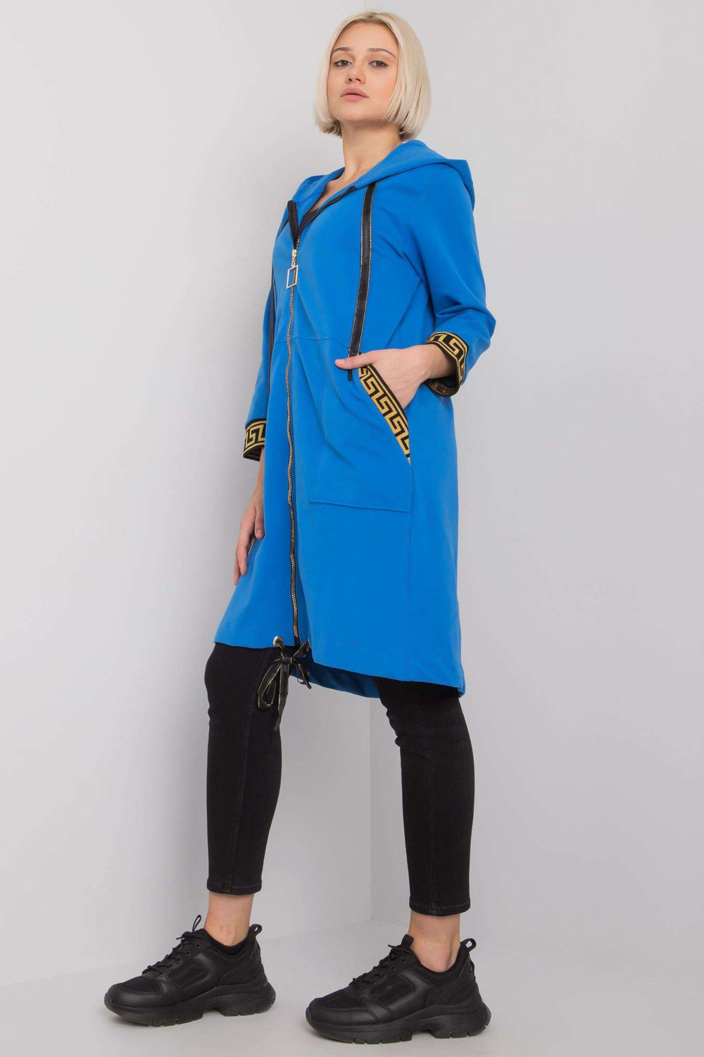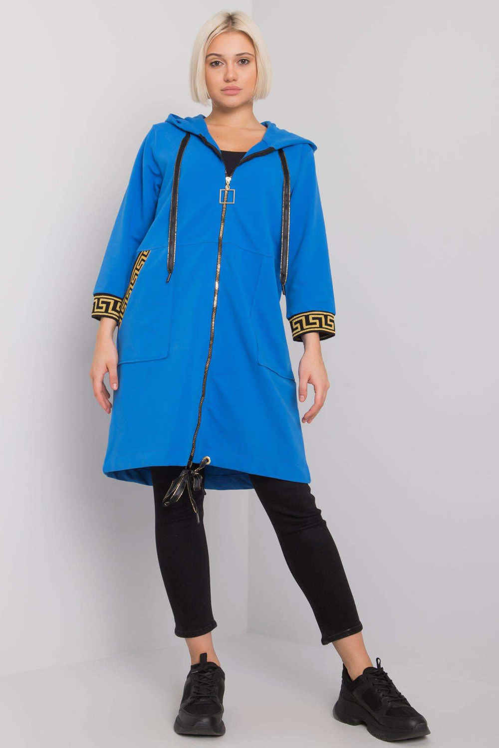 Tamsiai mėlynos spalvos Lisabonos moteriškas megztinis su gobtuvu.
