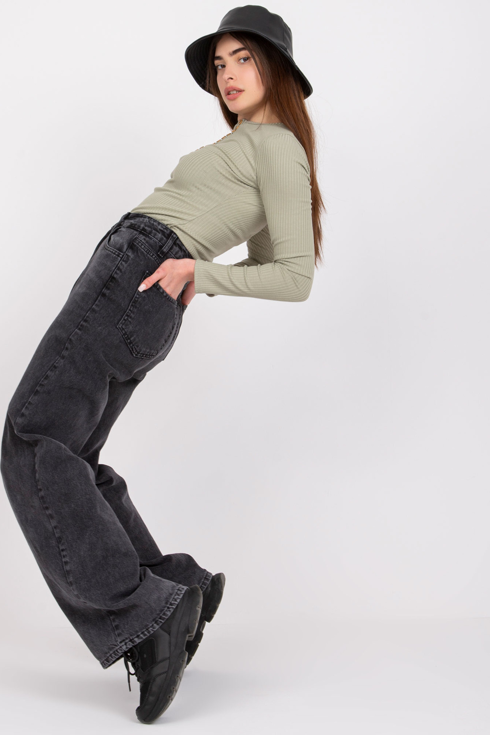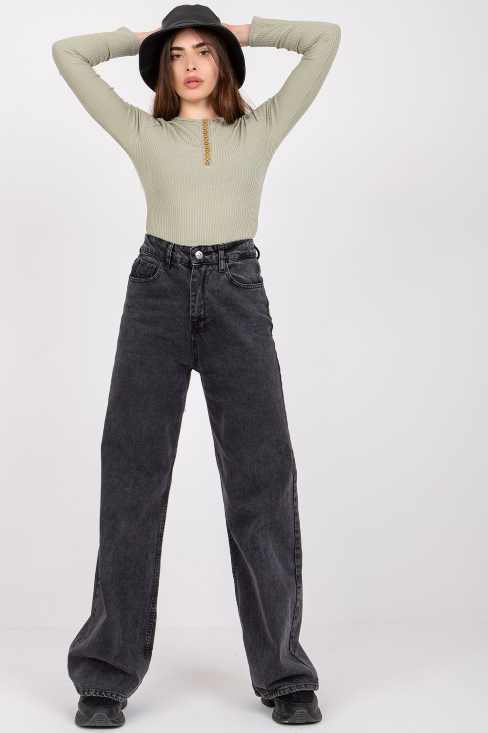 Modelis dėvi 36 dydį. Modelio išmatavimai: ūgis 168 cm, krūtinė 82 cm, juosmuo 63 cm, klubai 93 cm.