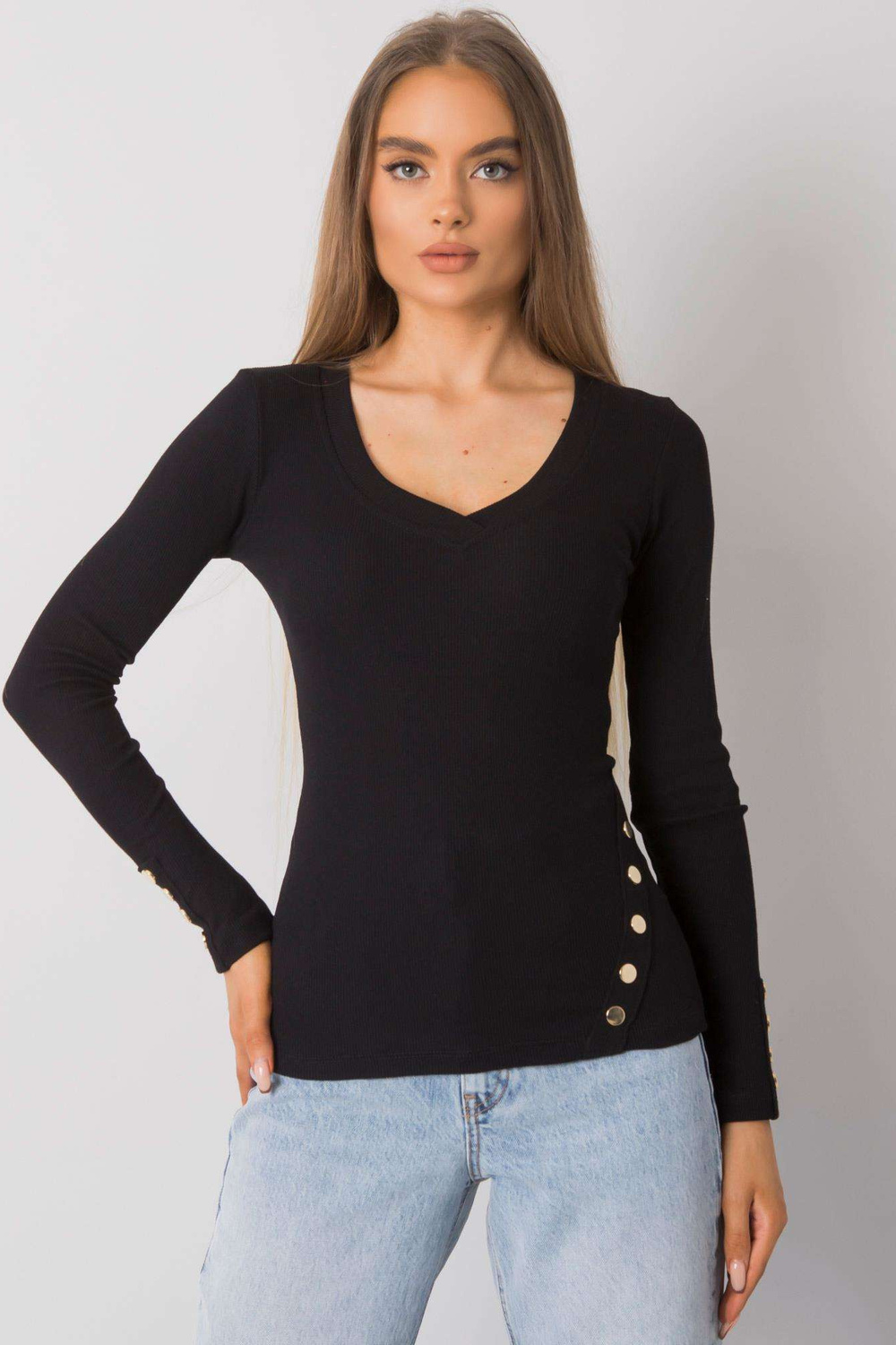 Modelis dėvi S dydį Modelio matmenys: aukštis 174 cm, krūtinė 83 cm, juosmuo 62 cm, klubai 96 cm.