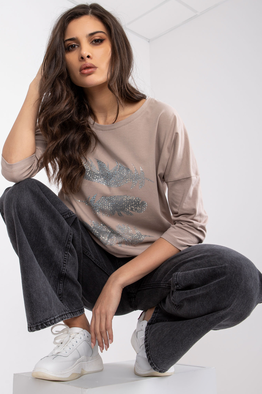 Tamsiai smėlio spalvos medvilninė palaidinė su Anisa krašteliu.