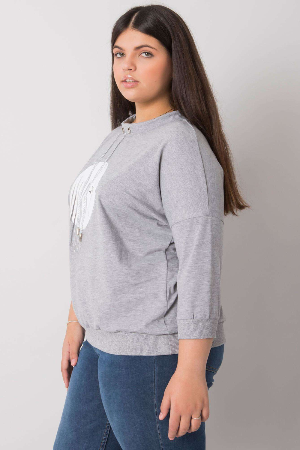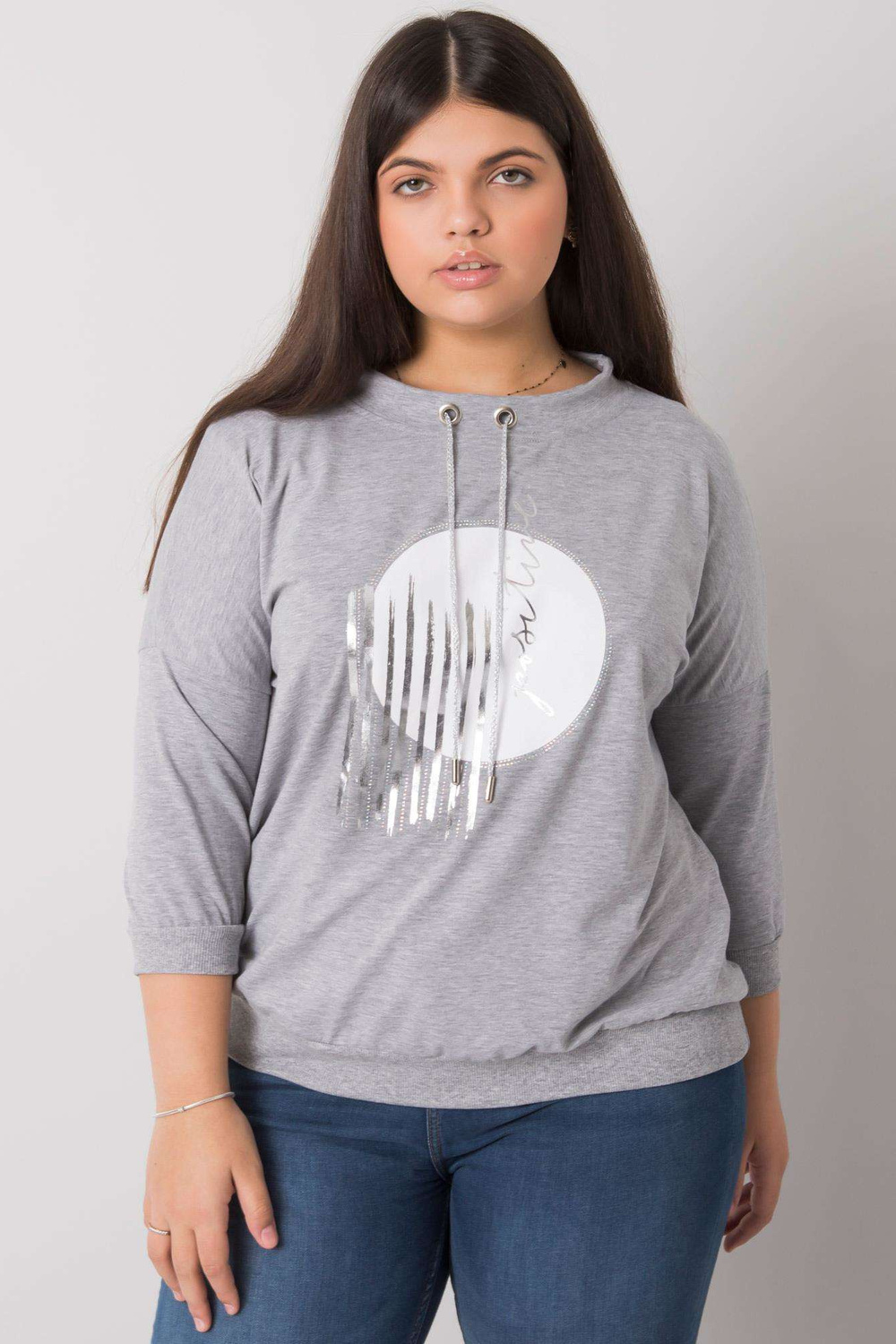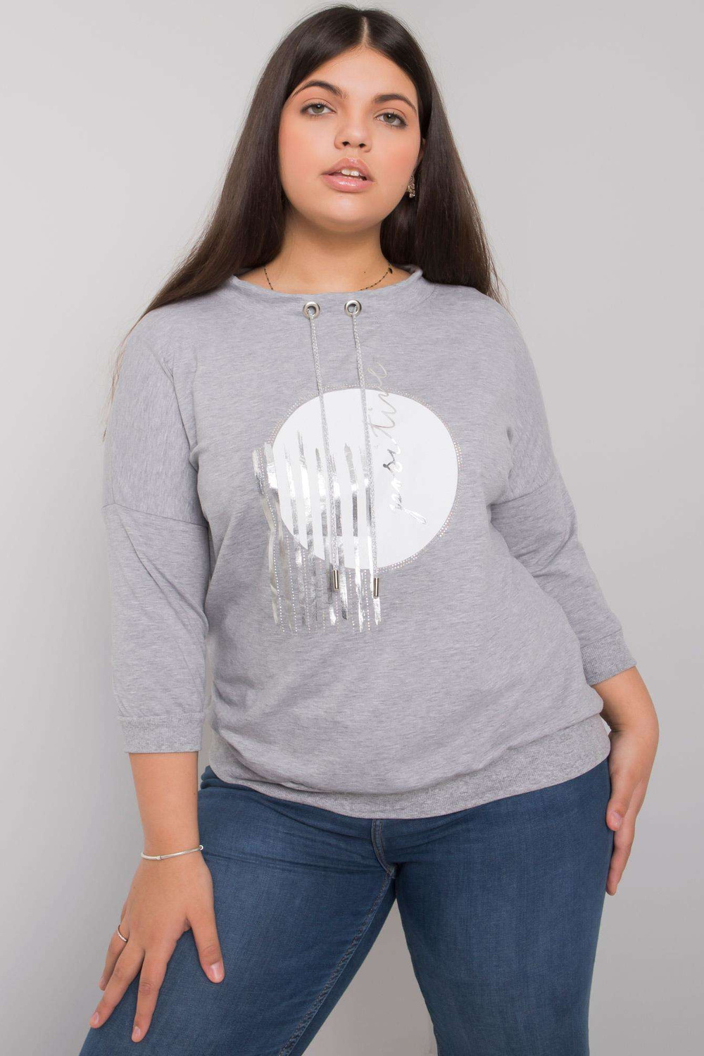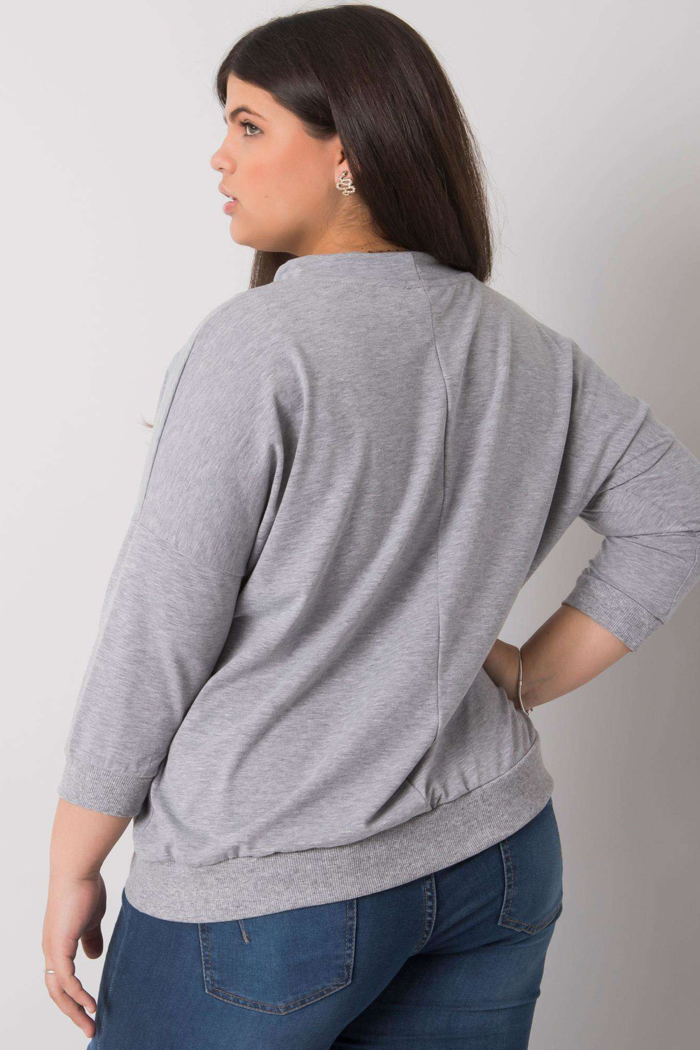Greymelange plius dydžio palaidinė su Bella aplikacijomis.