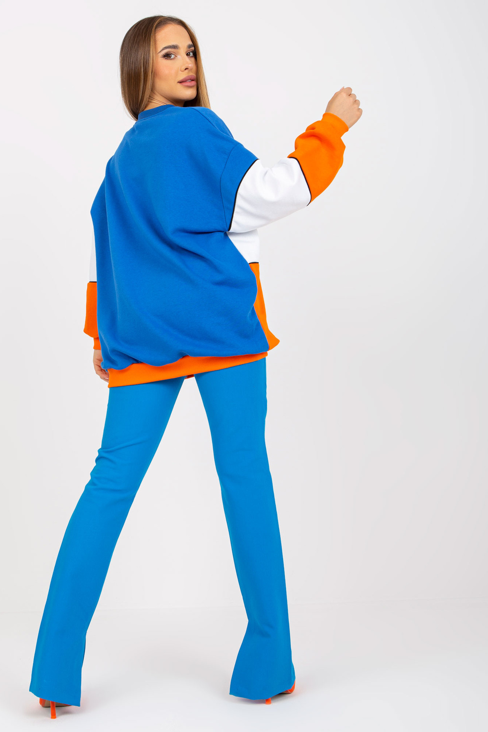 Mėlynos ir oranžinės spalvos megztinis, paprastas negabaritinis RUE PARIS .