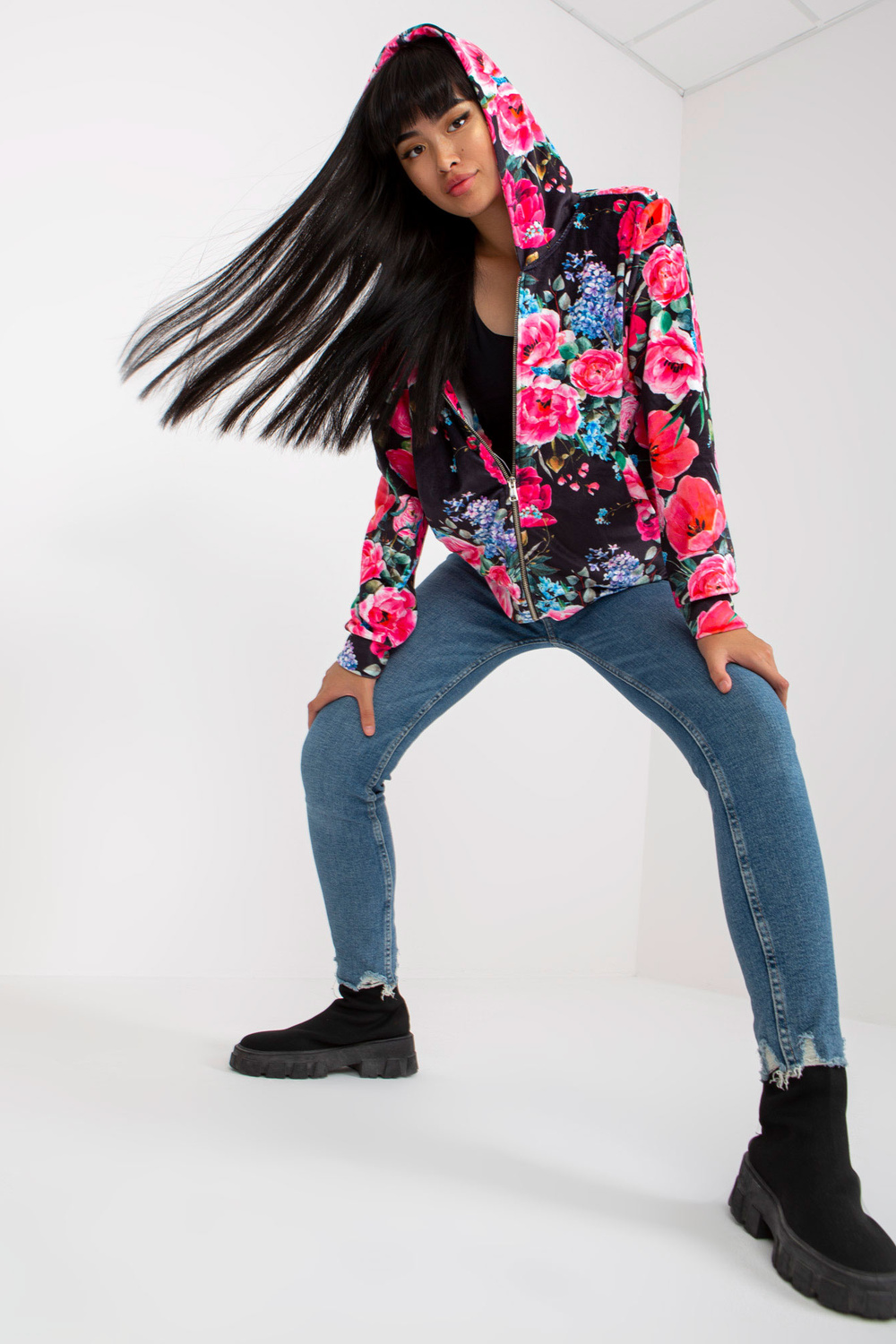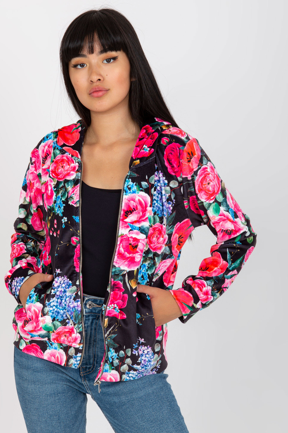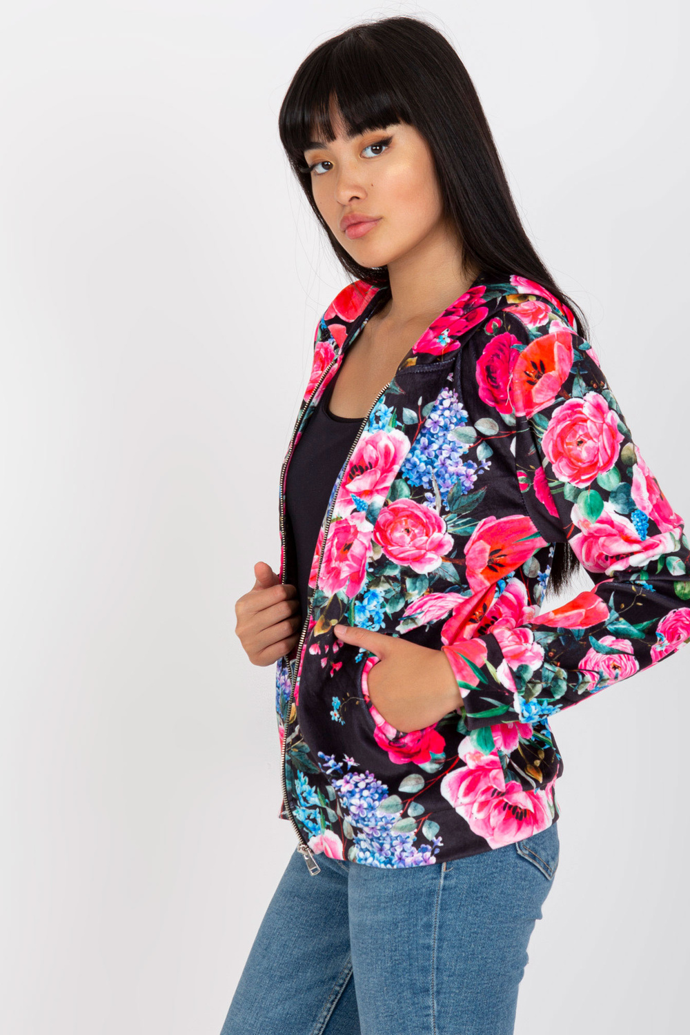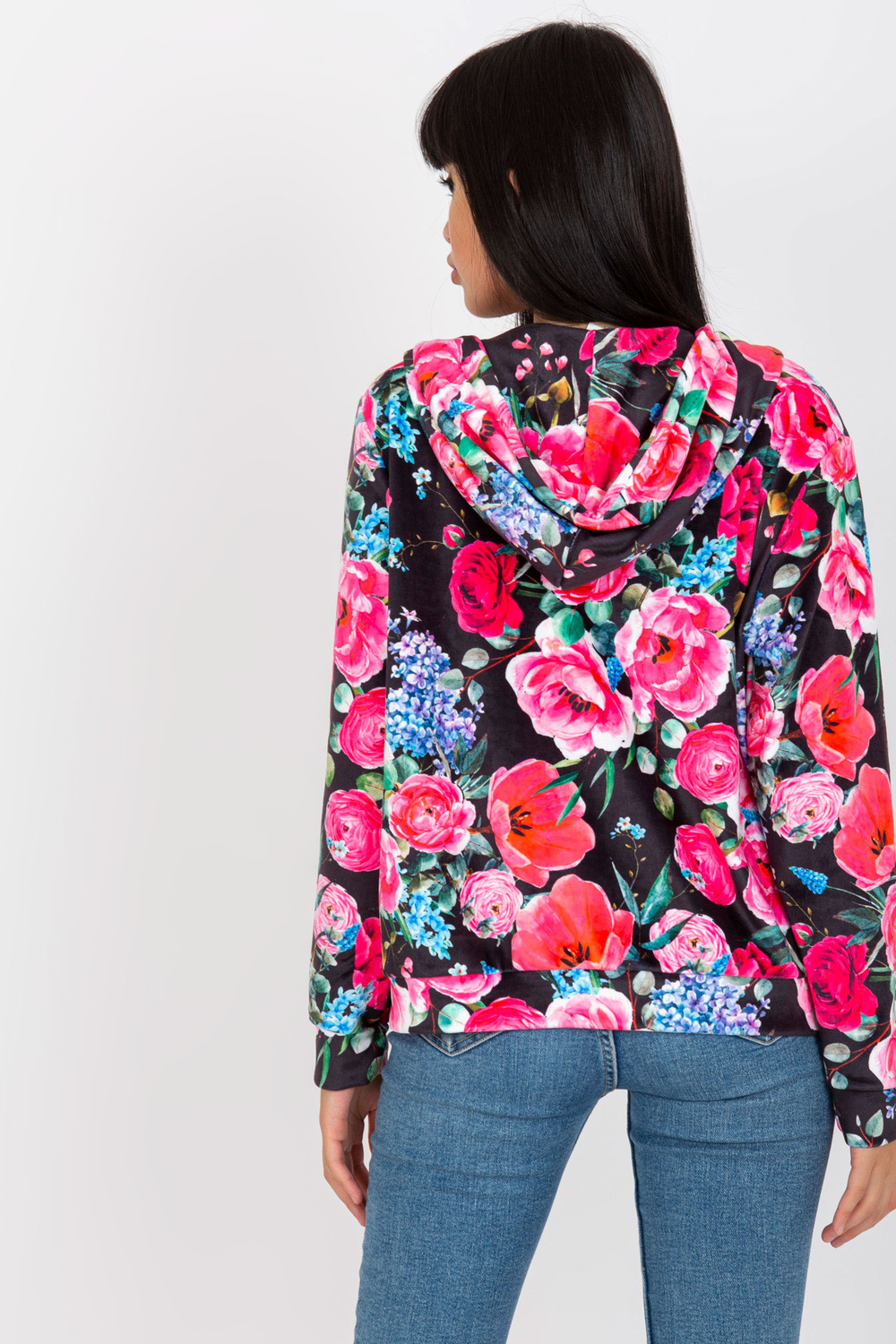 Juodas rožinės spalvos veliūrinis megztinis su gėlėmis RUE PARIS .