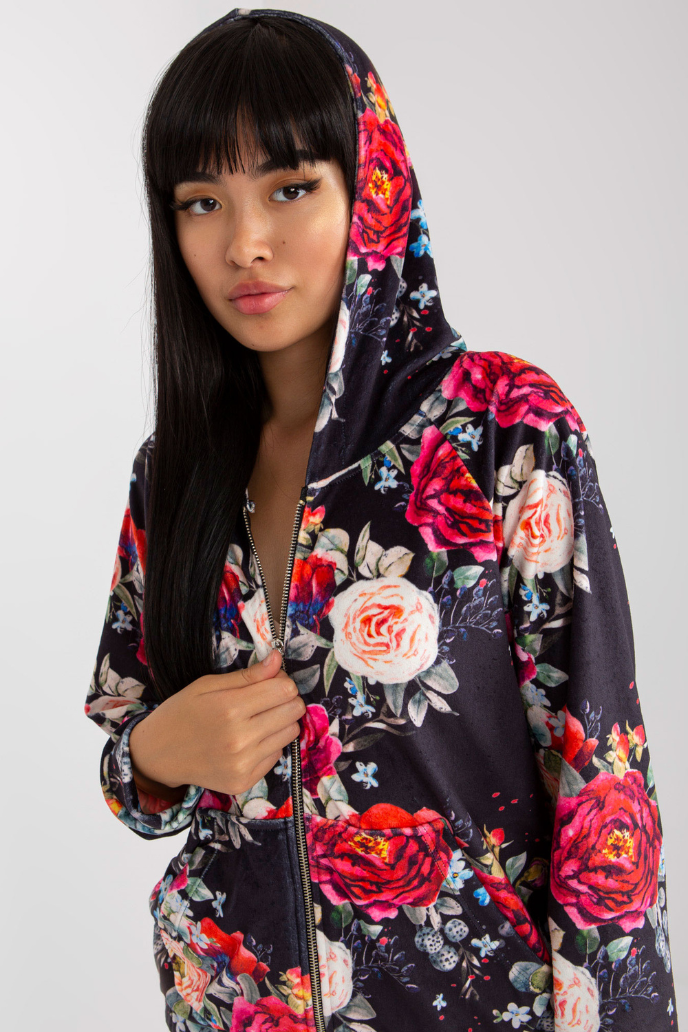 Juodas veliūrinis megztinis su gėlėmis RUE PARIS .