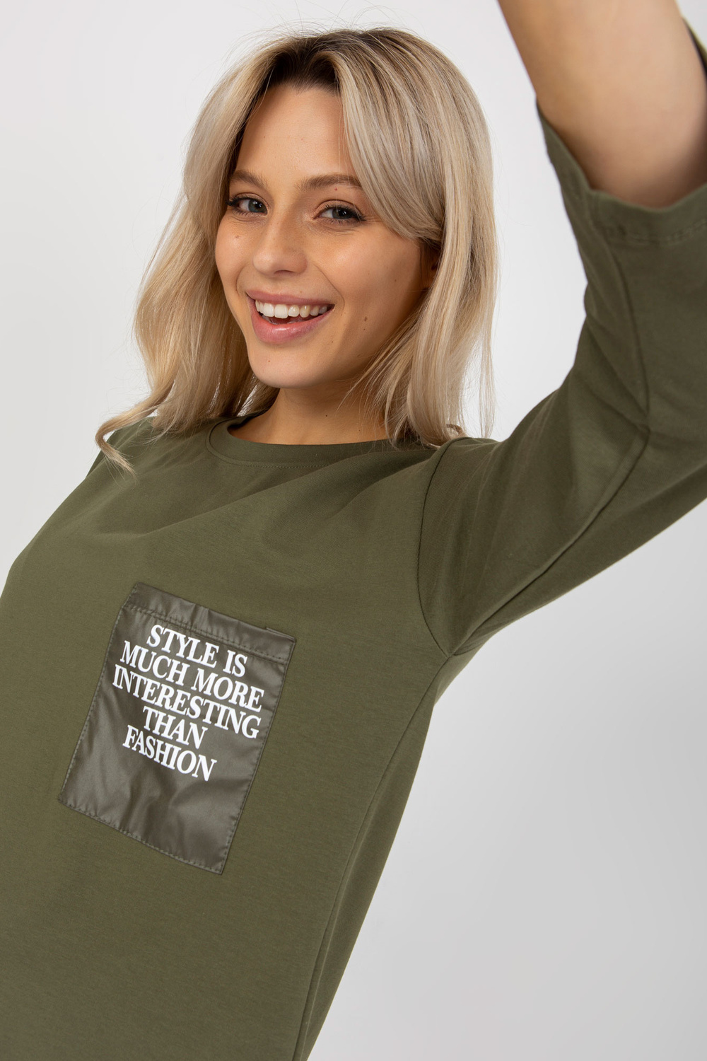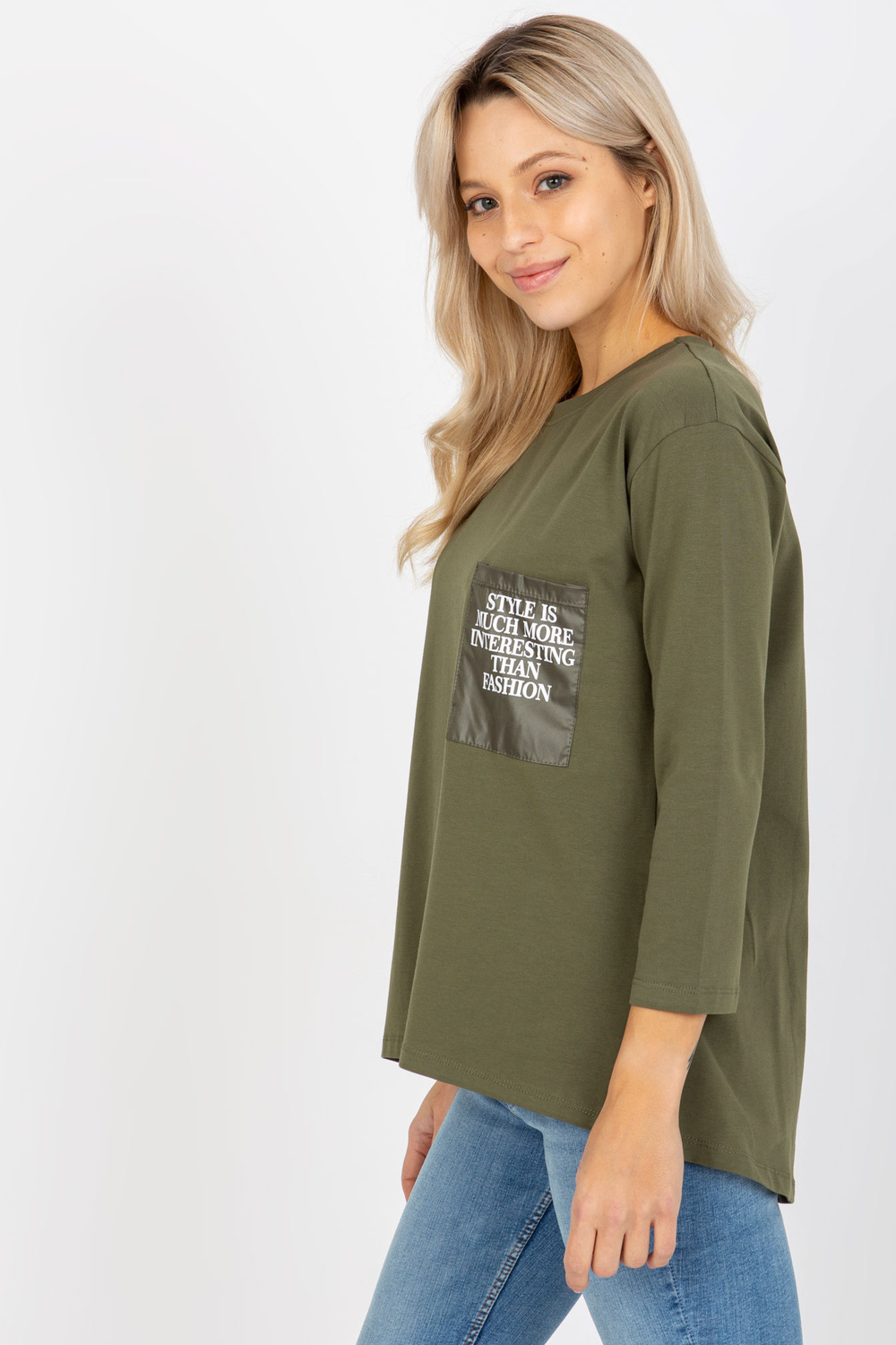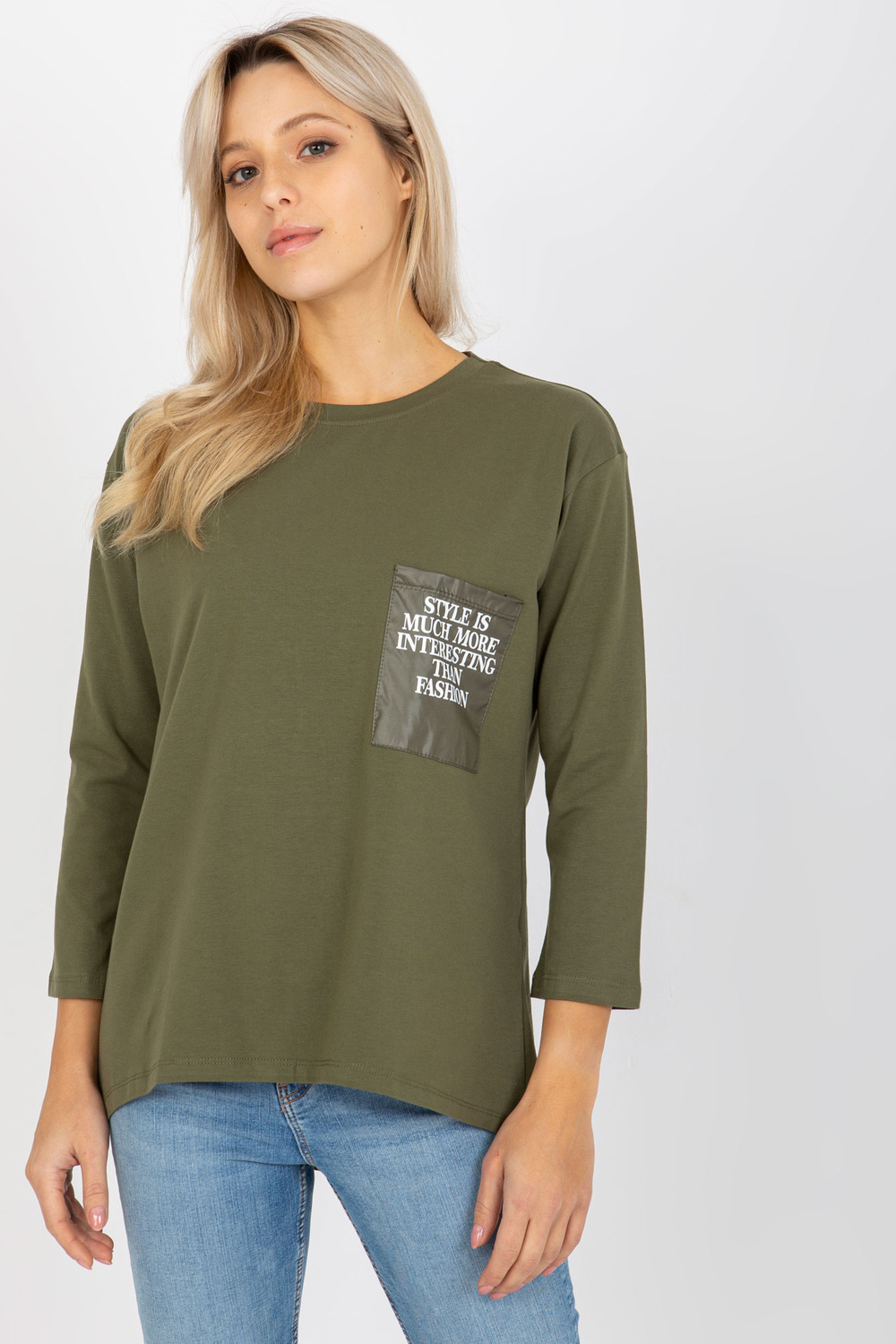 Chaki spalvos medvilninė laisvalaikio palaidinė su kišene.