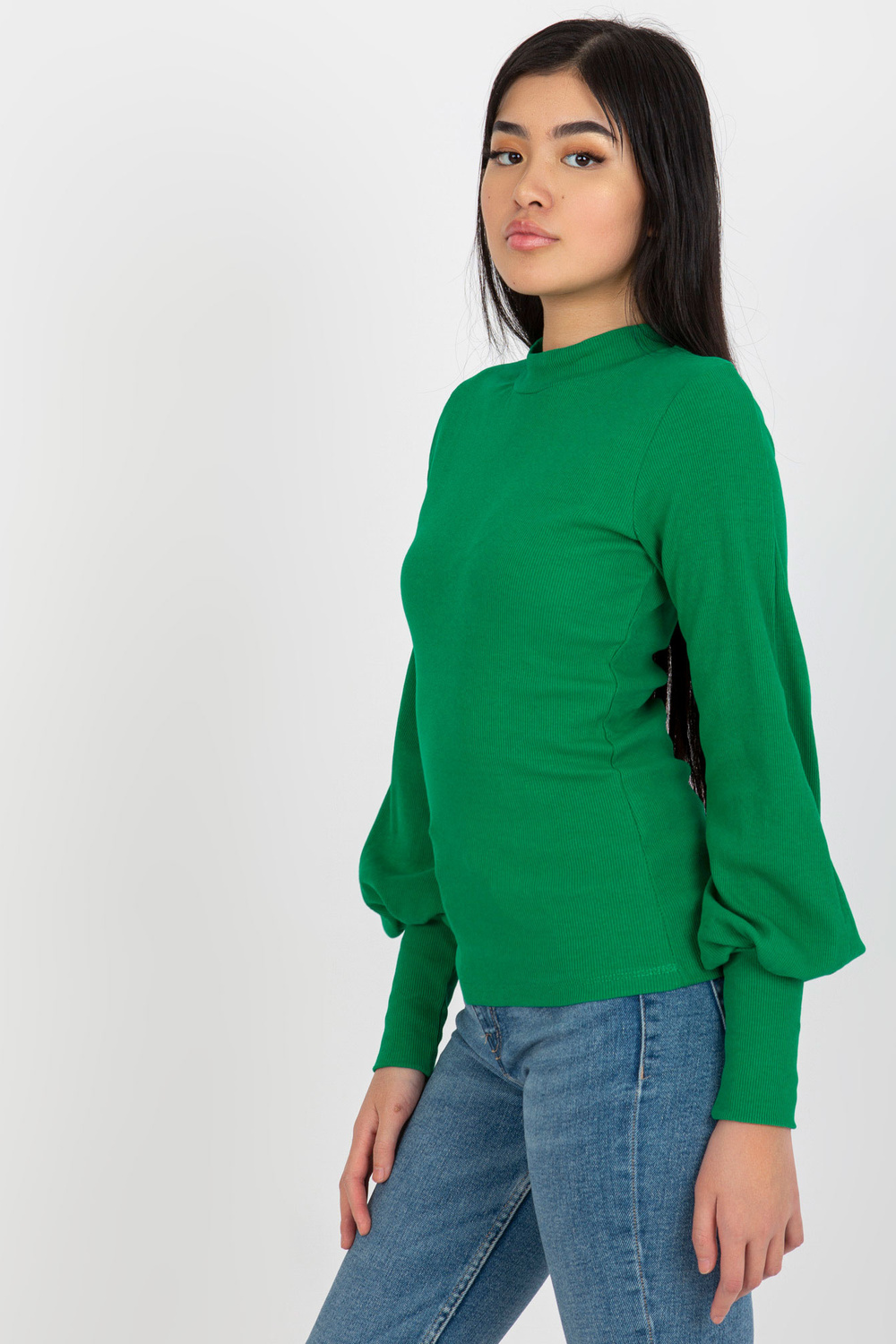 RUE PARIS paprastoji žalia palaidinė plačiomis rankovėmis.