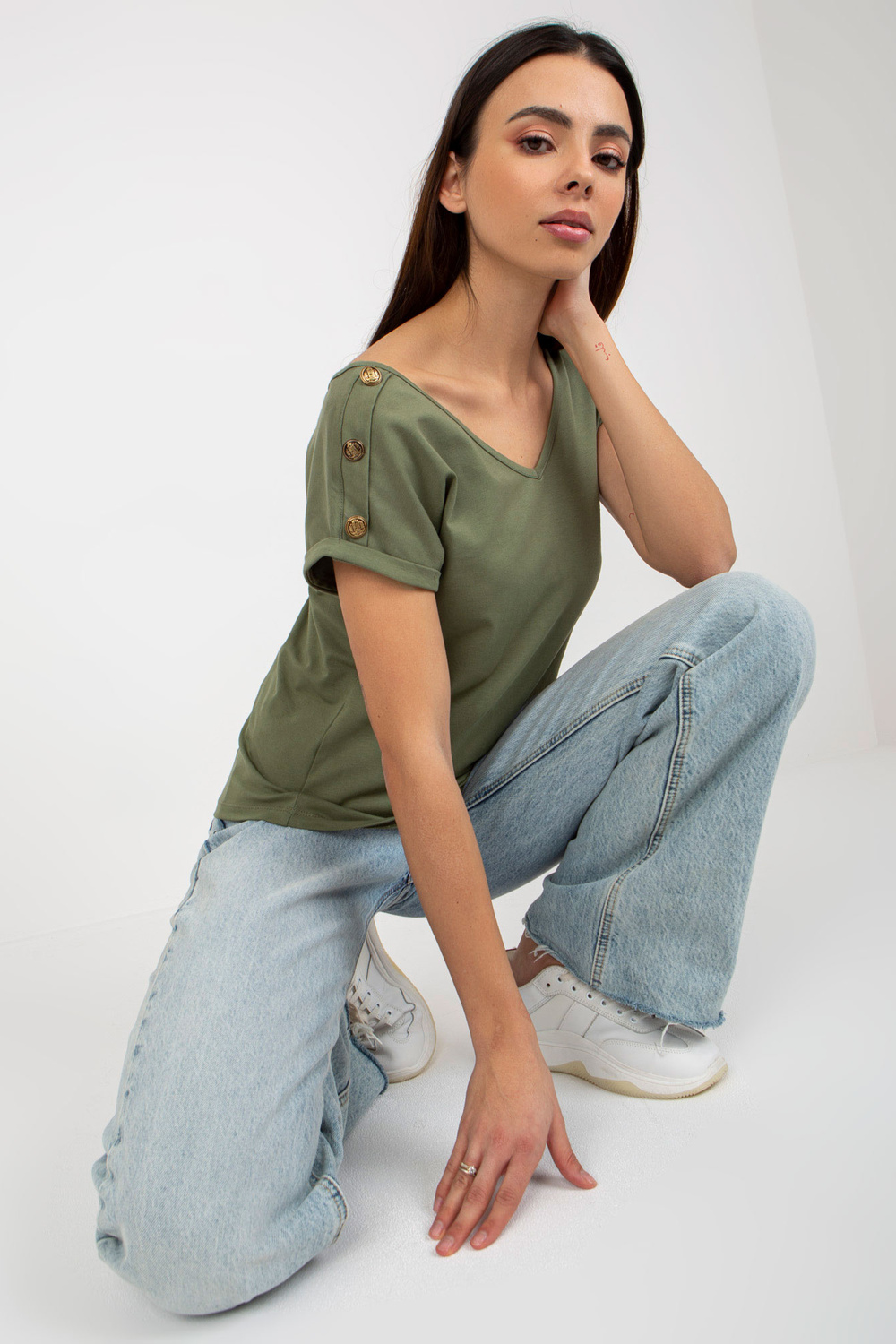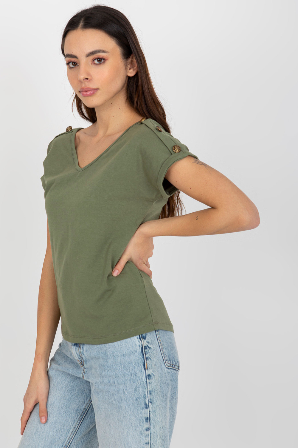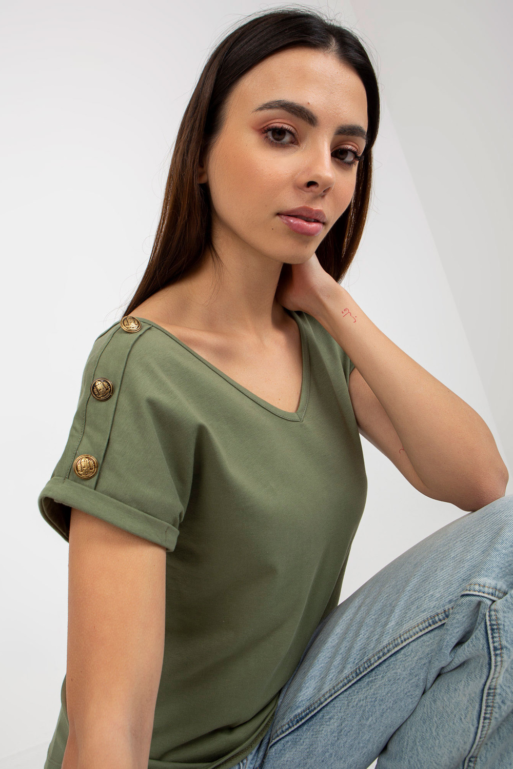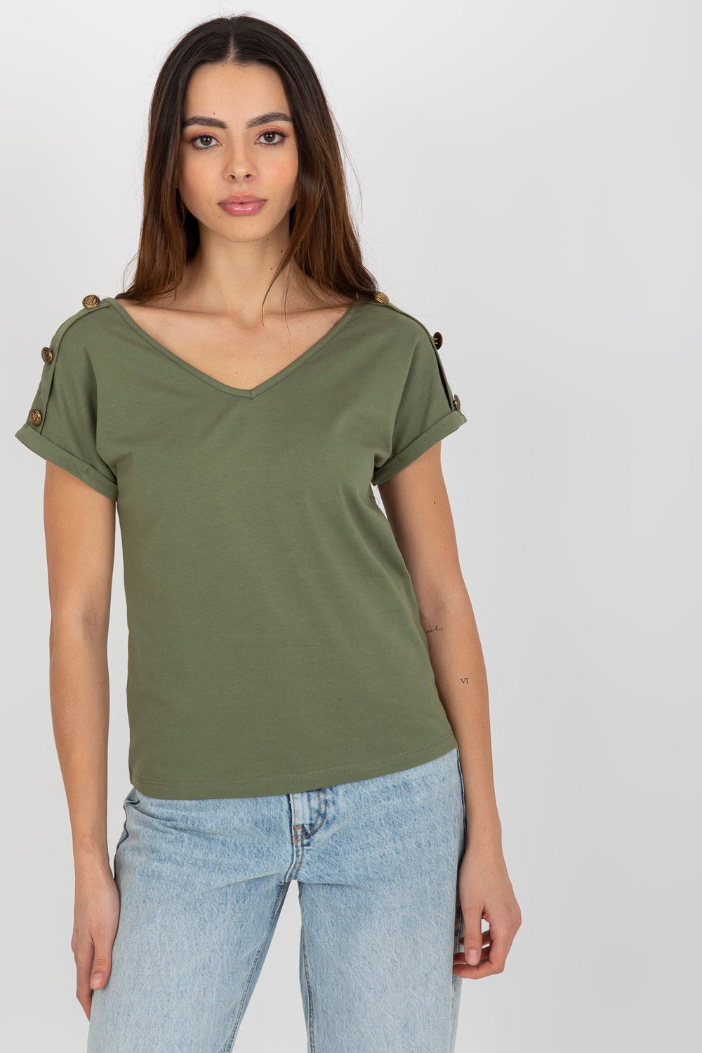 Žalia laisvalaikio palaidinė su dekoratyvinėmis sagomis OCH BELLA.