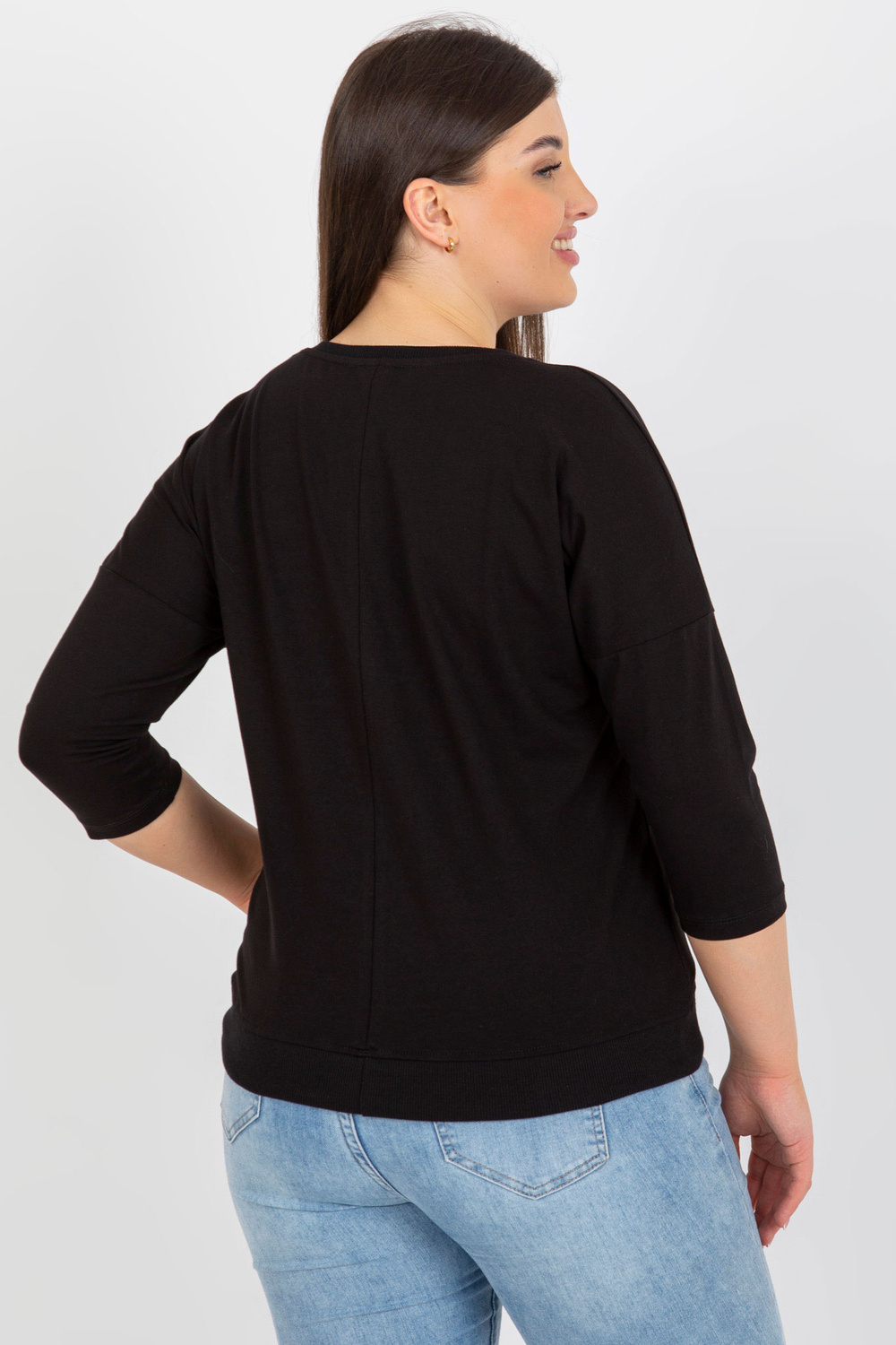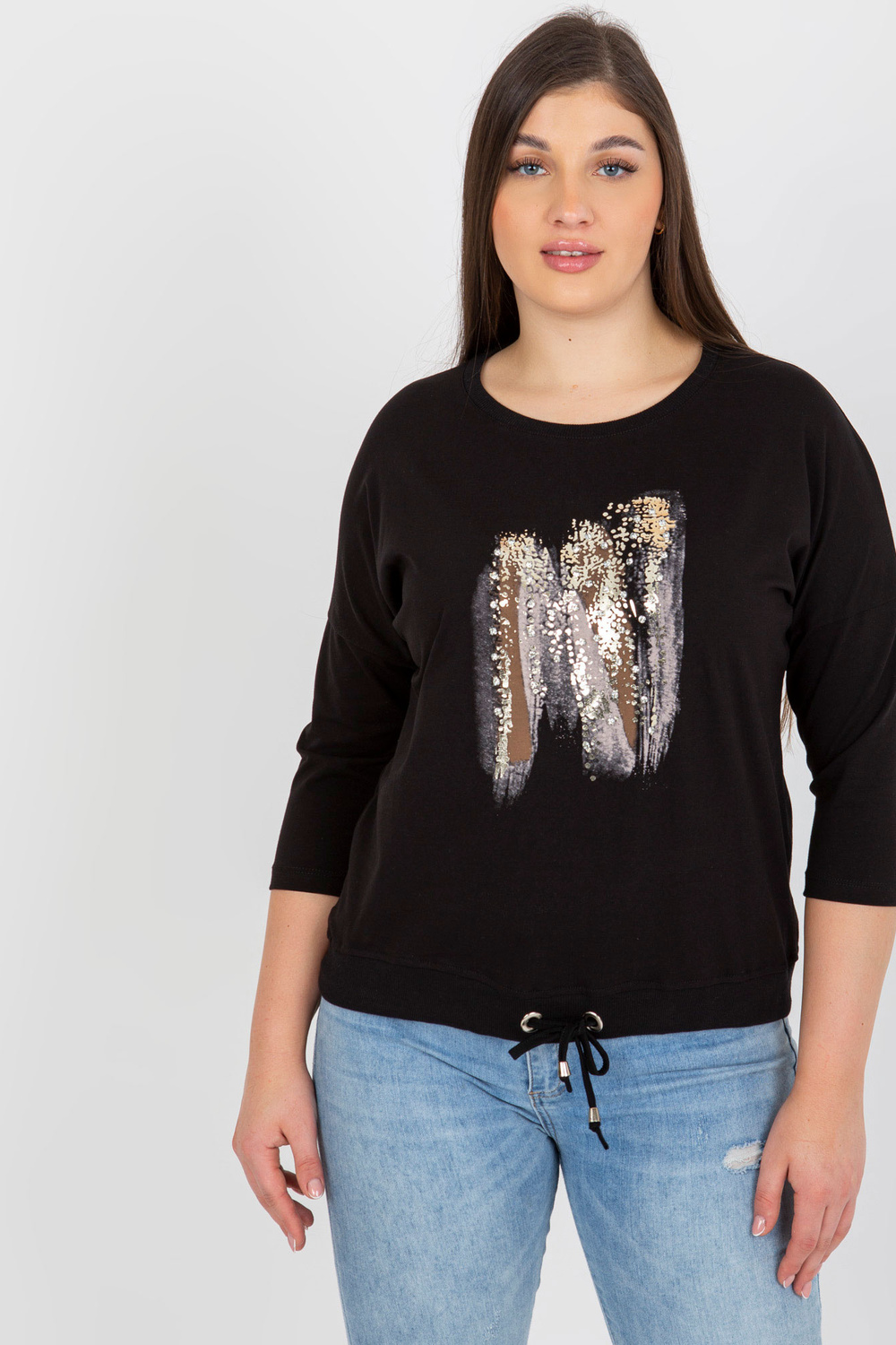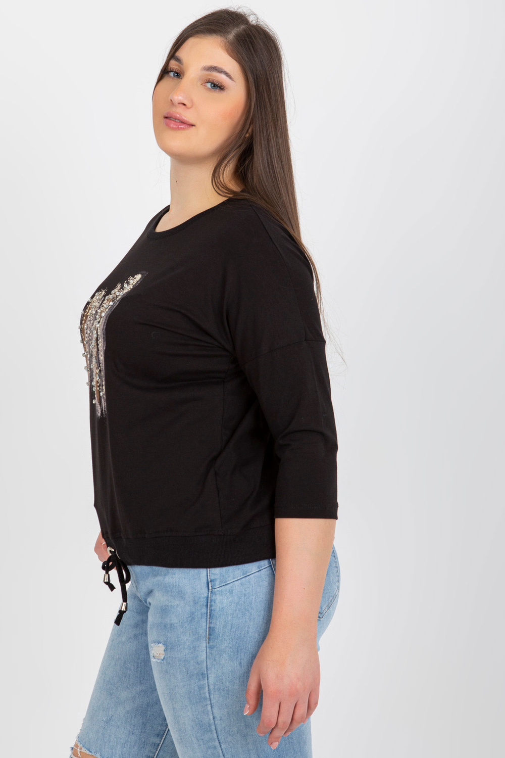 Juoda plius dydžio palaidinė su raštu ir 3/4 rankovėmis