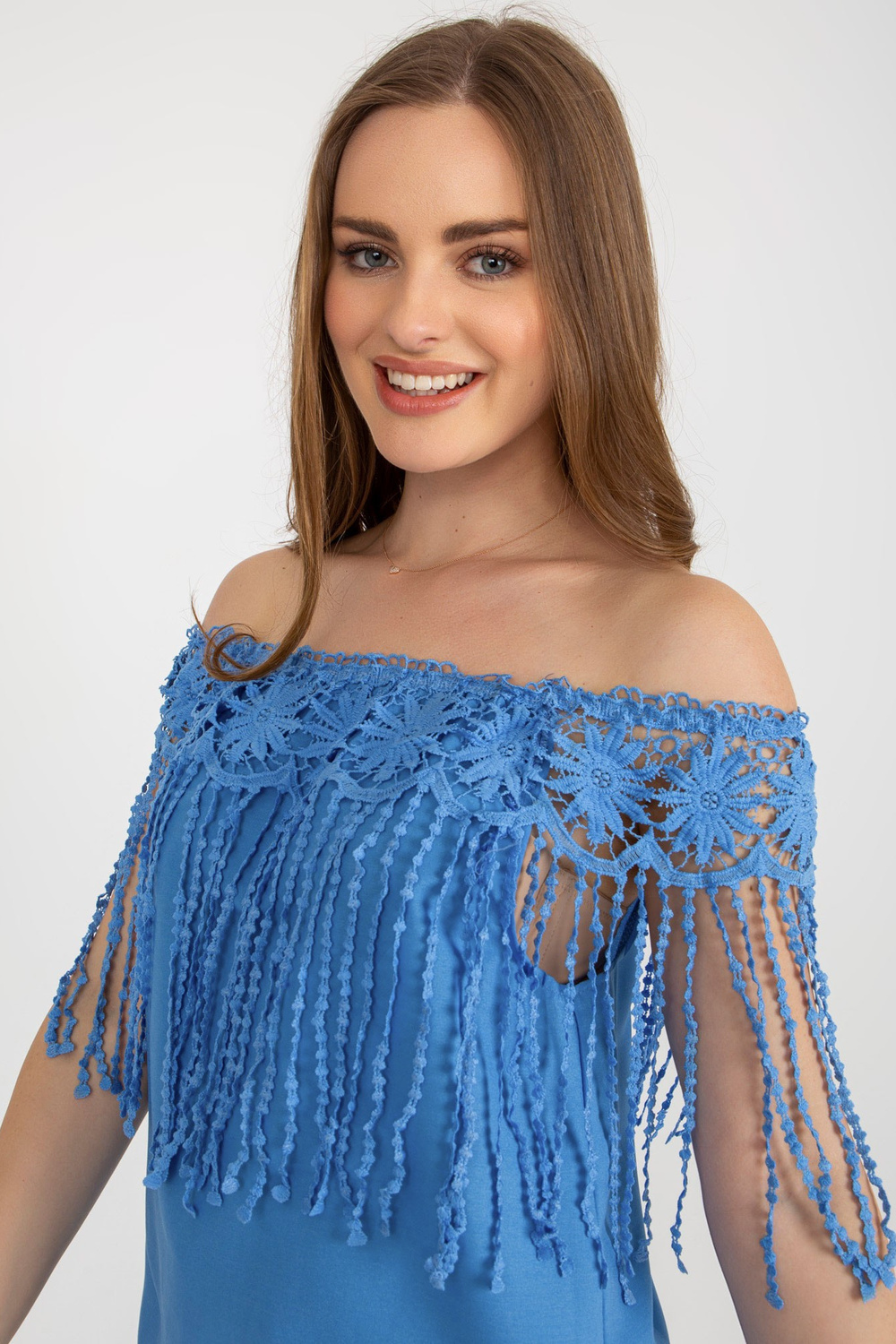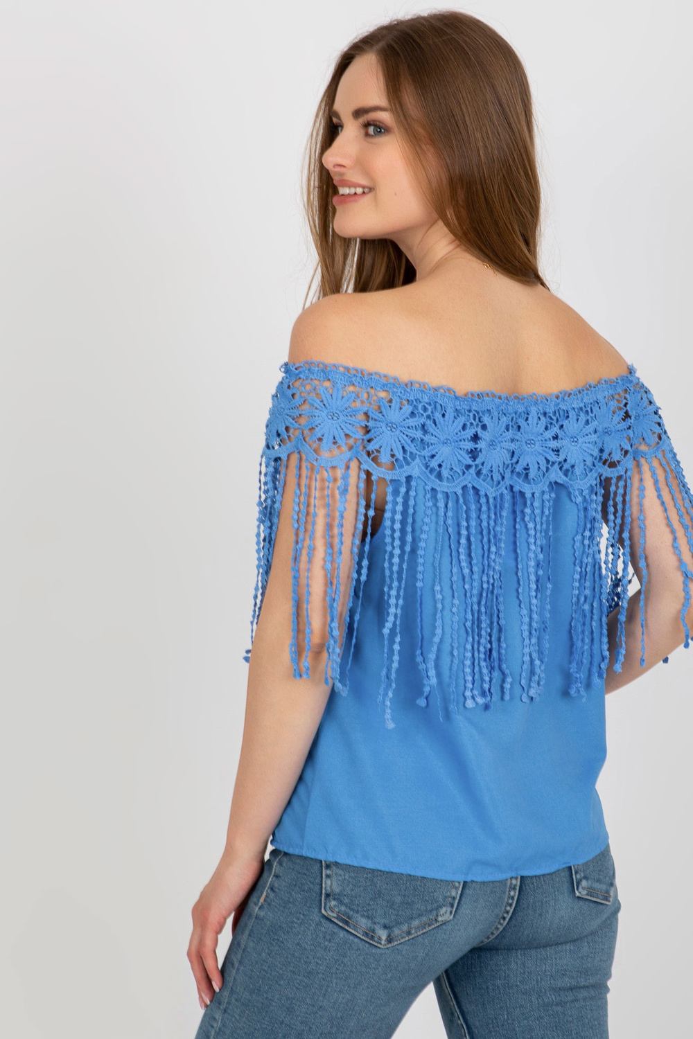 Mėlyna vasarinė ispaniška palaidinė su kutais.