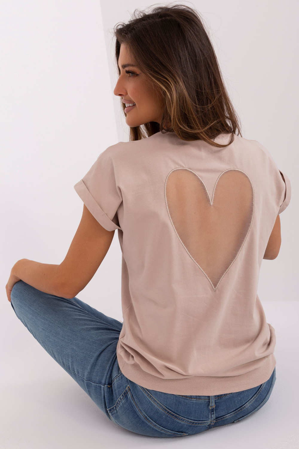 Palaidinės matmenys vieno dydžio, matuojamas plokščias: plotis po pažastimis - 48 cm, visas ilgis - 61 cm.