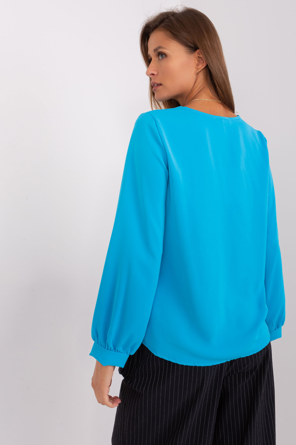 Modelis dėvi vieno dydžio dydį. Modelio išmatavimai: ūgis 176 cm, krūtinė 85 cm, juosmuo 64 cm, klubai 92 cm.