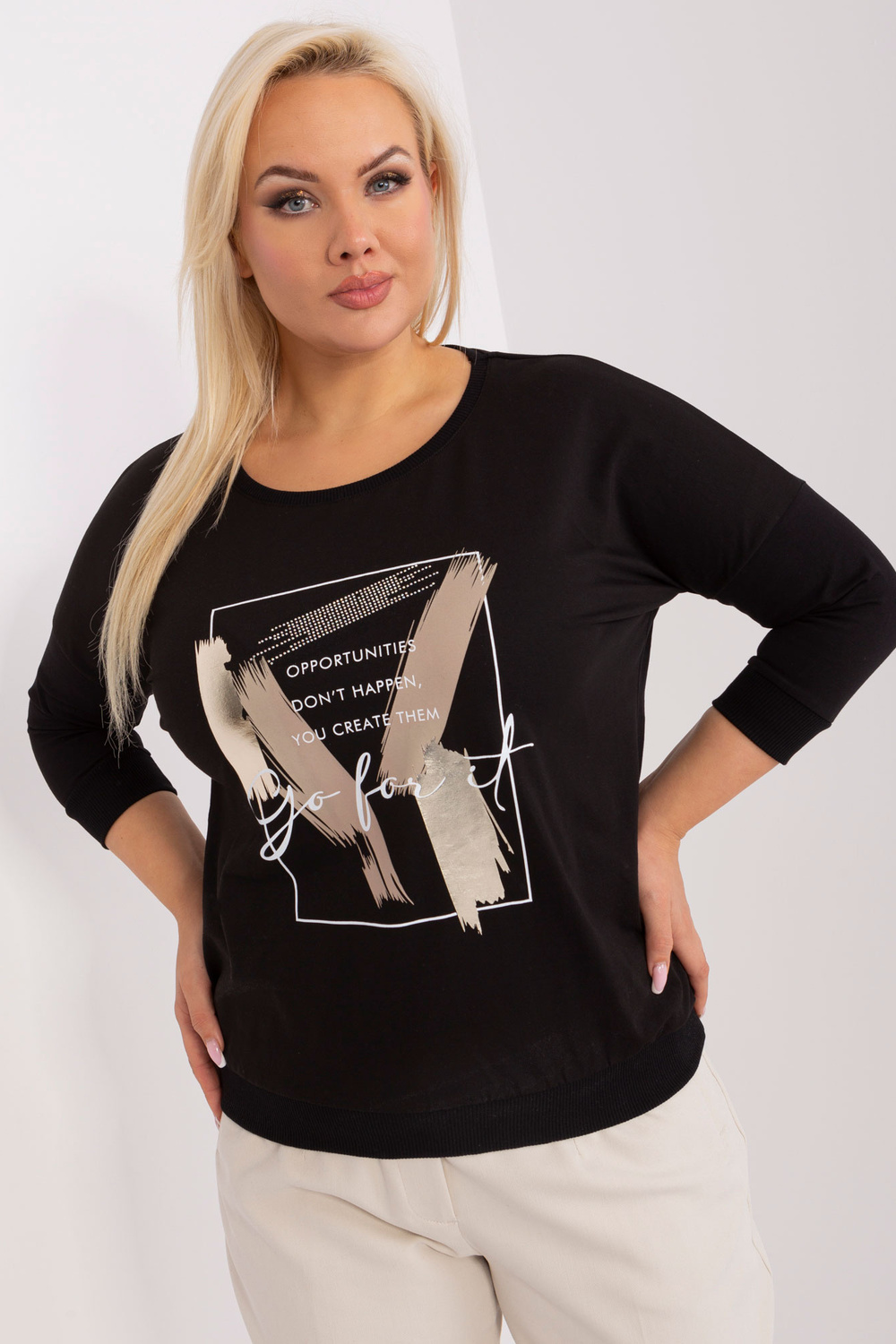 Juoda moteriška didelio dydžio palaidinė su 3/4 rankovėmis .