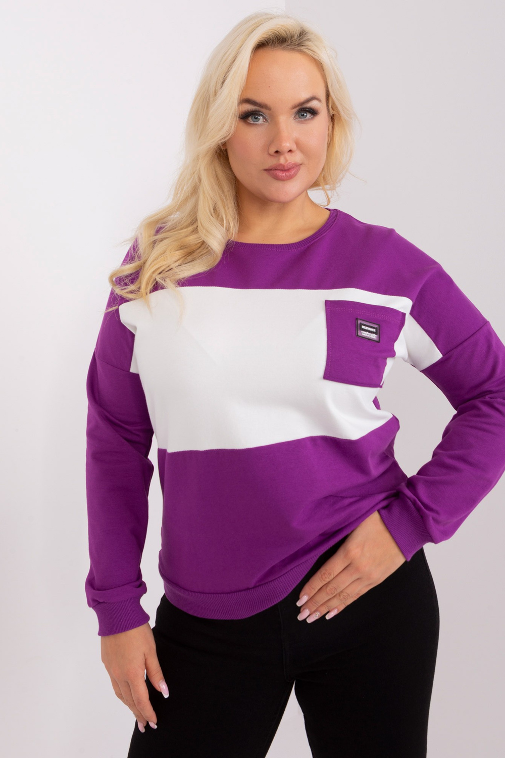 Violetinė ir ekru spalvos moteriška plius dydžio palaidinė su lopiniu .