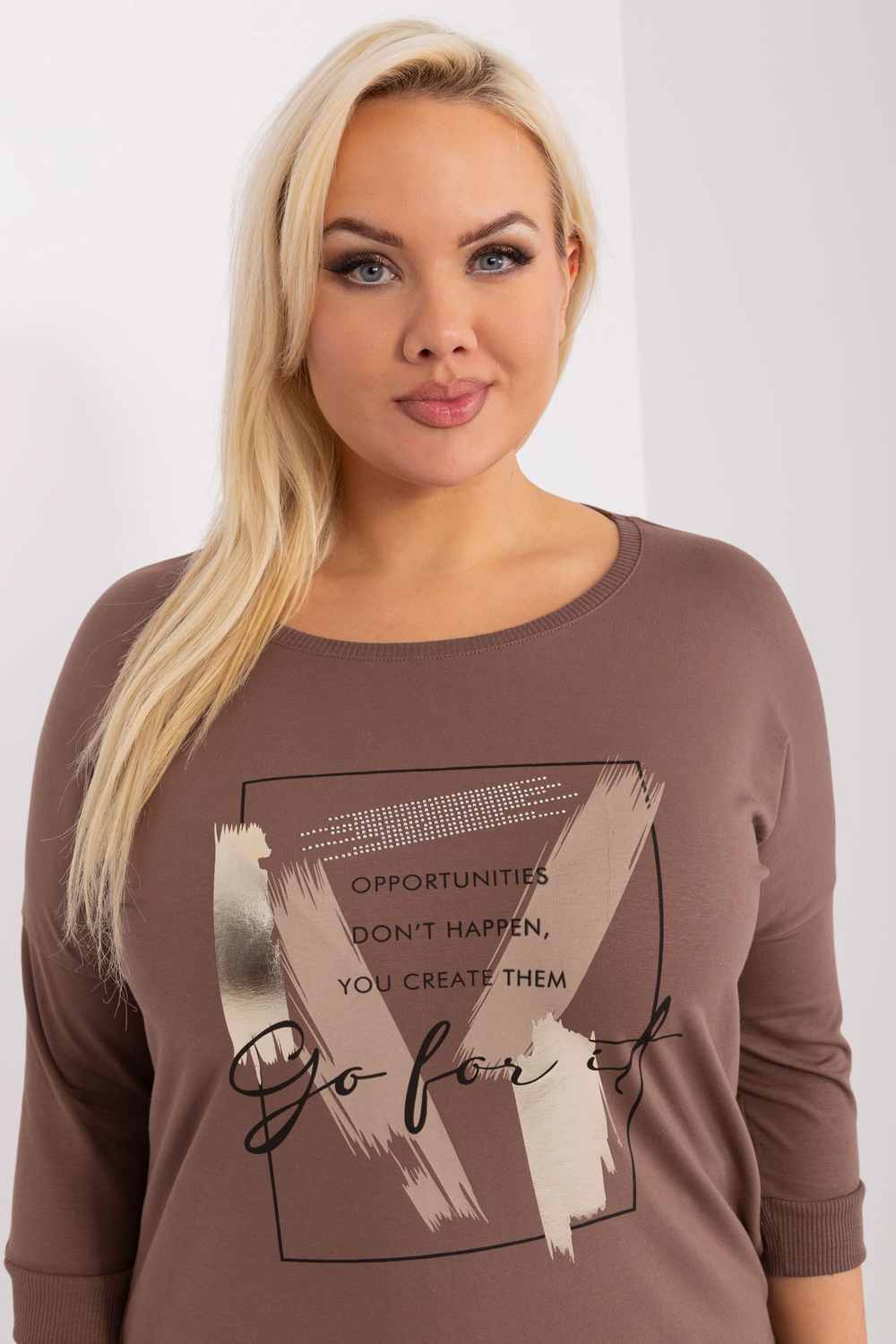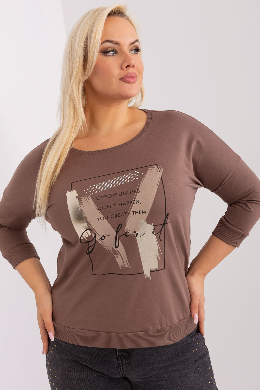 Ruda moteriška plius dydžio palaidinė su 3/4 rankovėmis .