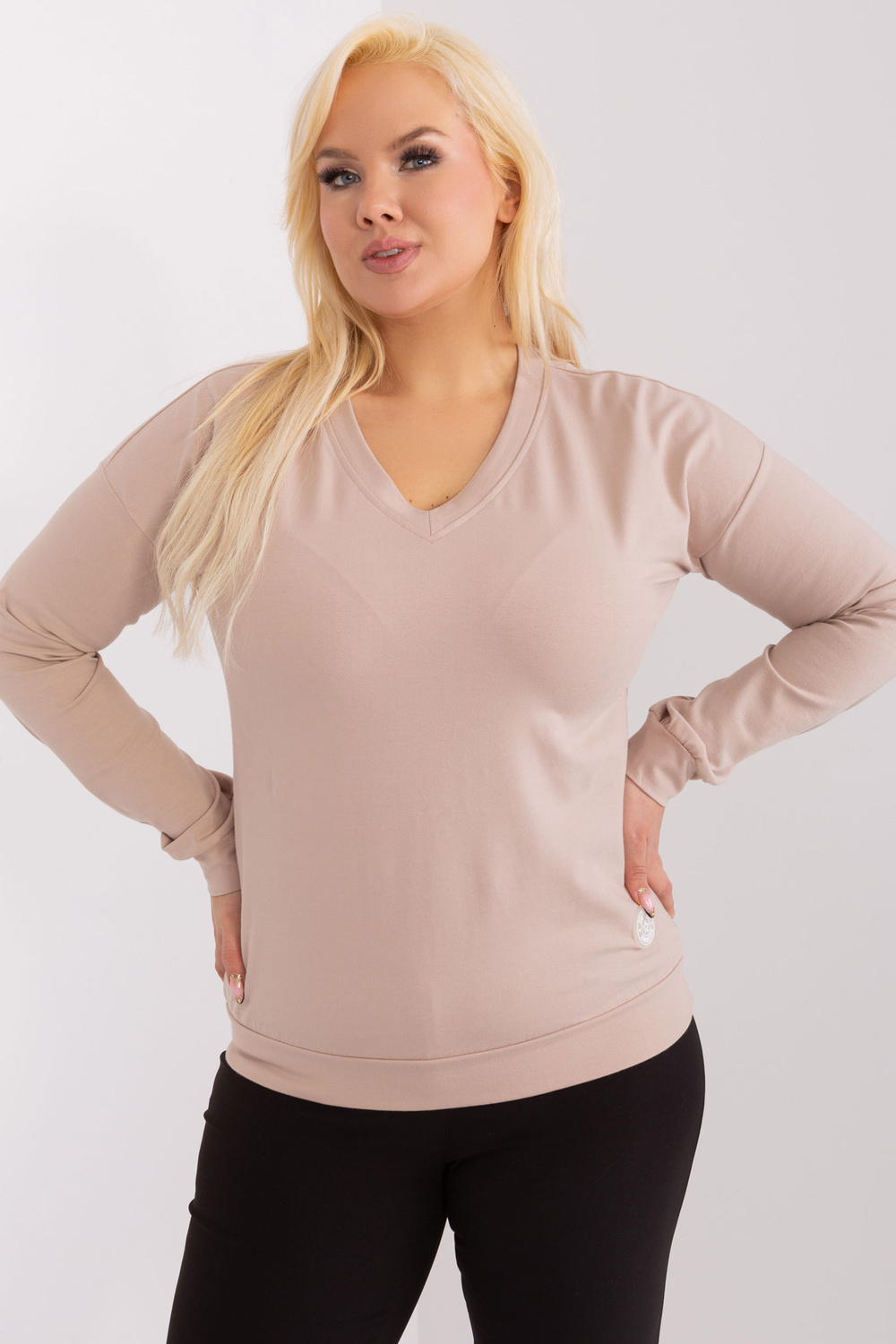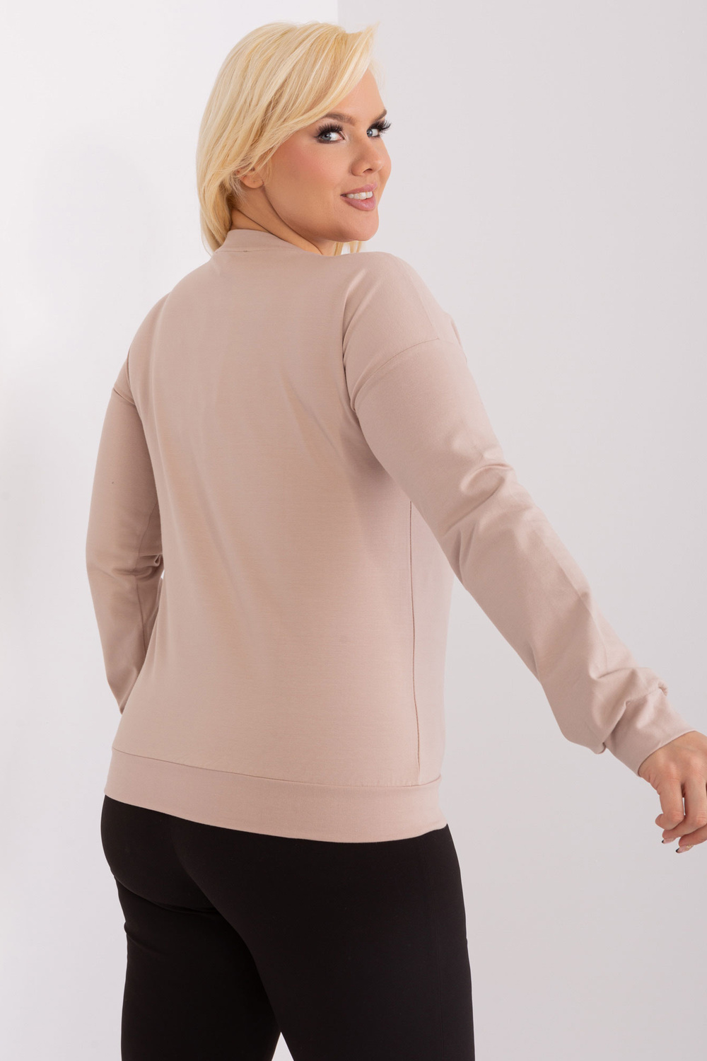 Modelis dėvi vieno dydžio dydį. Modelio išmatavimai: ūgis 172 cm, krūtinė 103 cm, juosmuo 73 cm, klubai 103 cm.