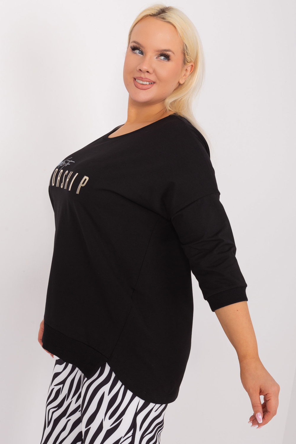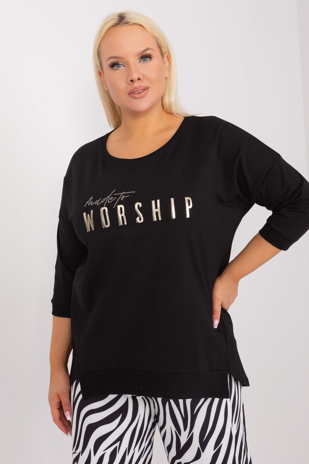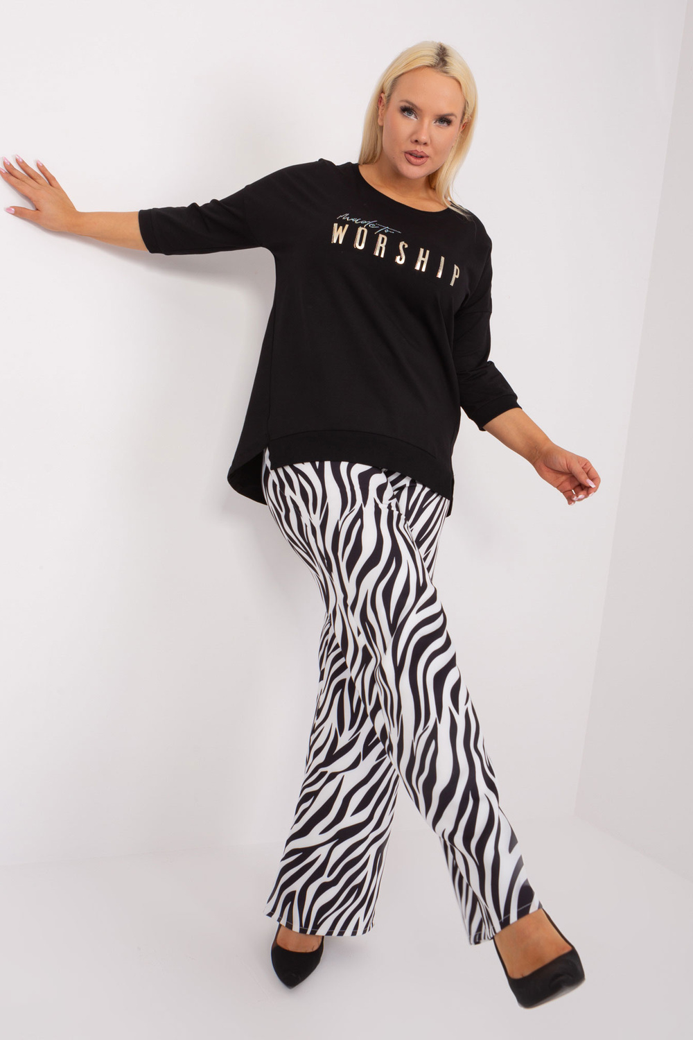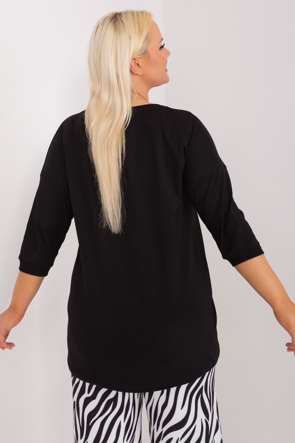 Vieno dydžio palaidinės išmatavimai plokščiai: plotis pažastyje - 67 cm, bendras ilgis (priekyje) - 67 cm, bendras ilgis (nugaroje) - 77 cm, rankovių ilgis - 40 cm.