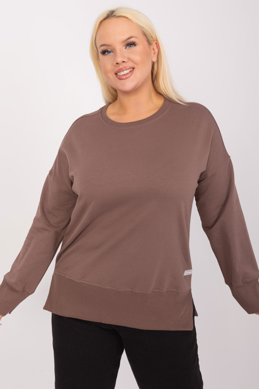 Vieno dydžio megztinio matmenys išmatuoti plokščiai: pažasties plotis - 62 cm, bendras ilgis - 65 cm, rankovių ilgis - 58 cm.