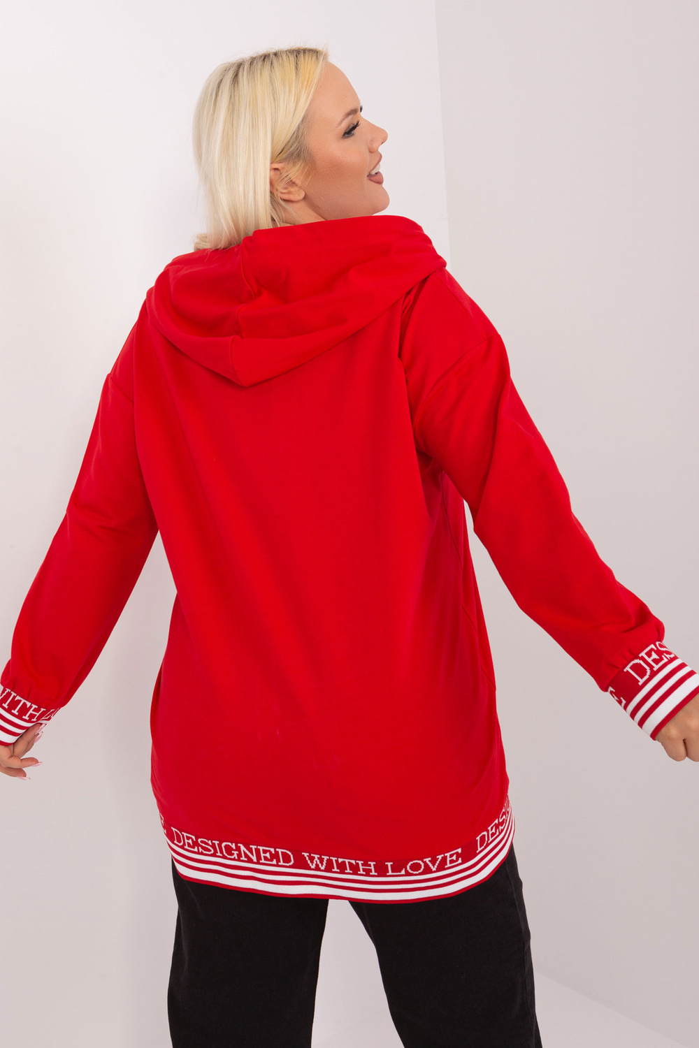 Vieno dydžio megztinio matmenys išmatuoti plokščiai: pažasties plotis - 65 cm, rankovių ilgis - 56 cm, bendras ilgis - 77 cm.
