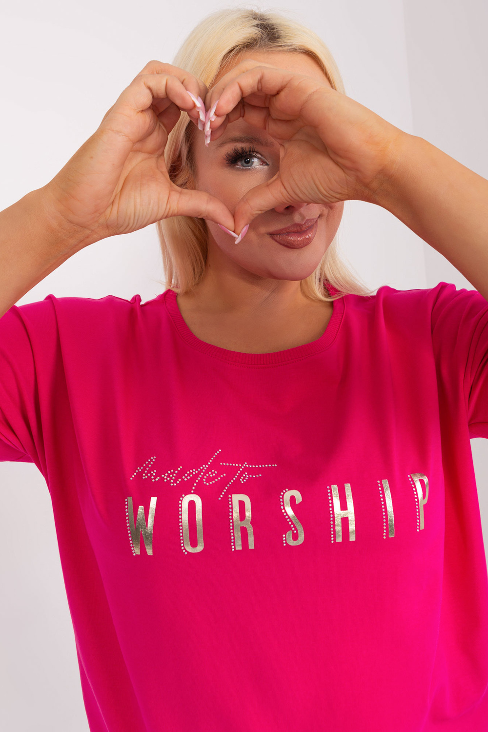 Vieno dydžio palaidinės išmatavimai plokščiai: plotis pažastyje - 67 cm, bendras ilgis (priekyje) - 67 cm, bendras ilgis (nugaroje) - 77 cm, rankovių ilgis - 40 cm.