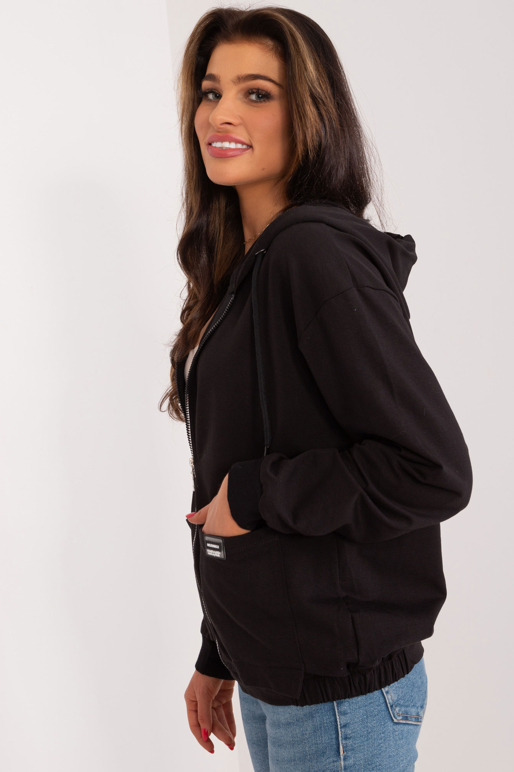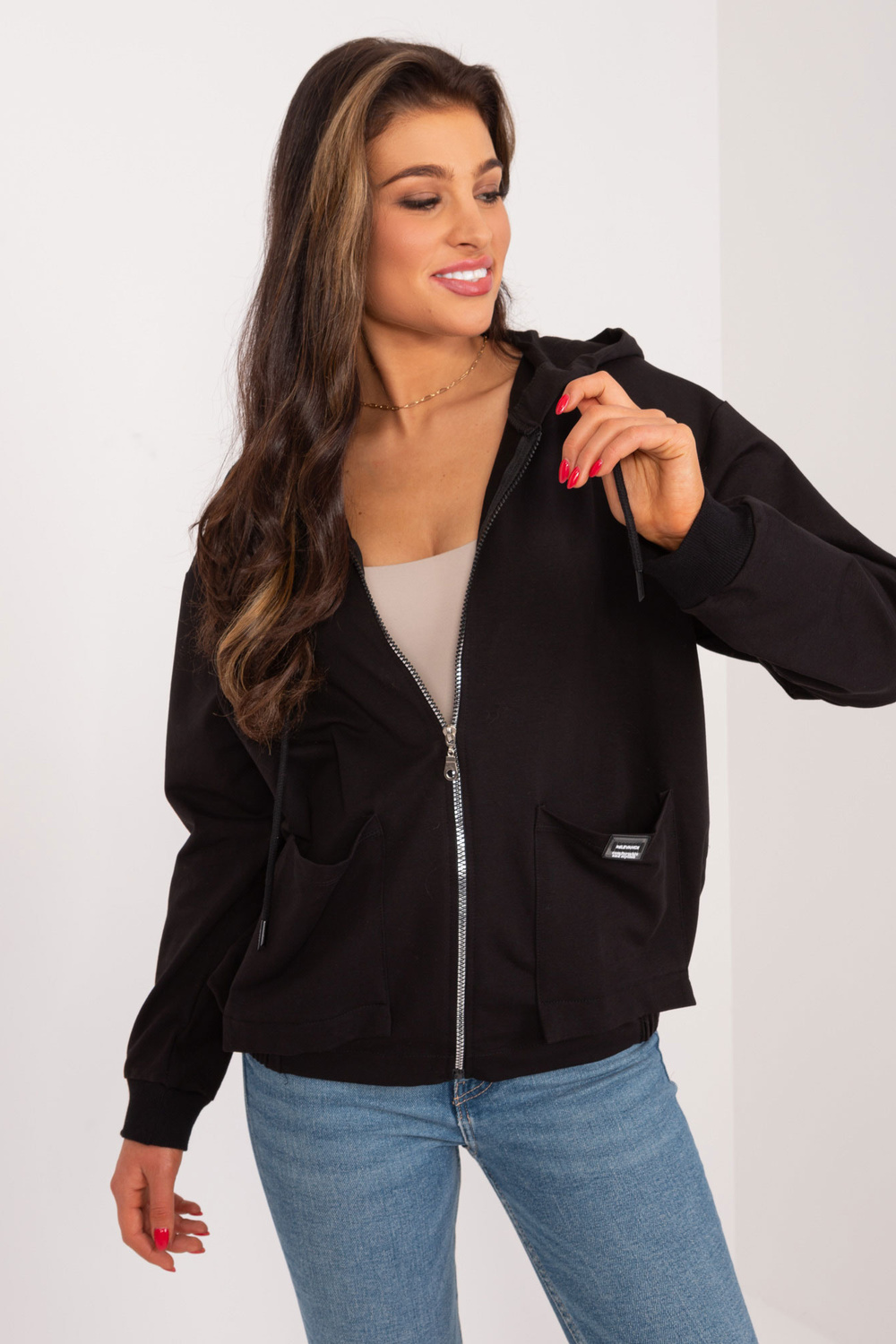 Modelis dėvi S/M dydį. Modelio išmatavimai: ūgis 173 cm, krūtinė 90 cm, juosmuo 64 cm, klubai 91 cm.