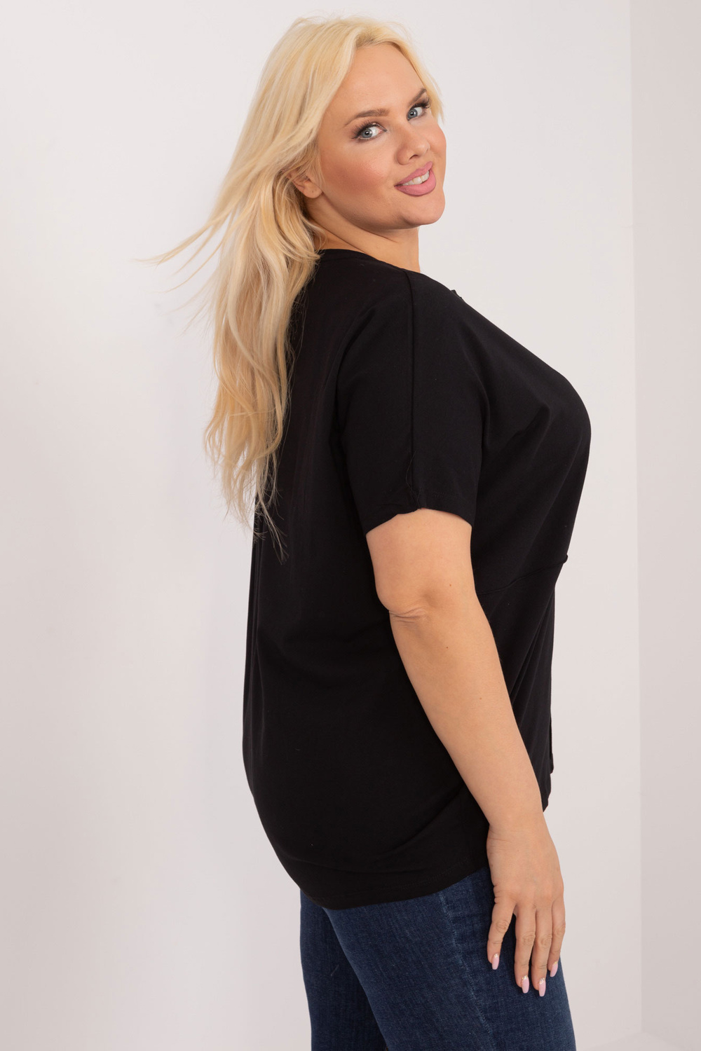 Vieno dydžio palaidinės matmenys matuojami plokščiai: plotis po pažastimis - 69 cm, bendras ilgis - 66 cm