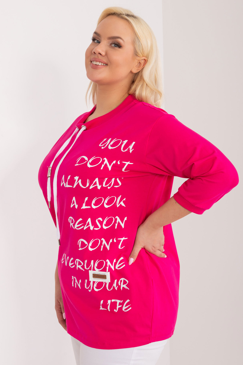 Vieno dydžio palaidinės matmenys plokščiai: plotis pažastyje - 60 cm, rankovių ilgis - 41 cm, bendras ilgis - 75 cm.