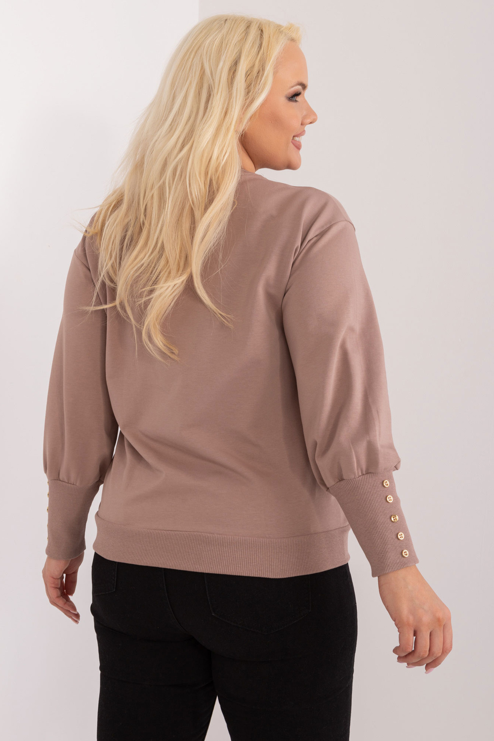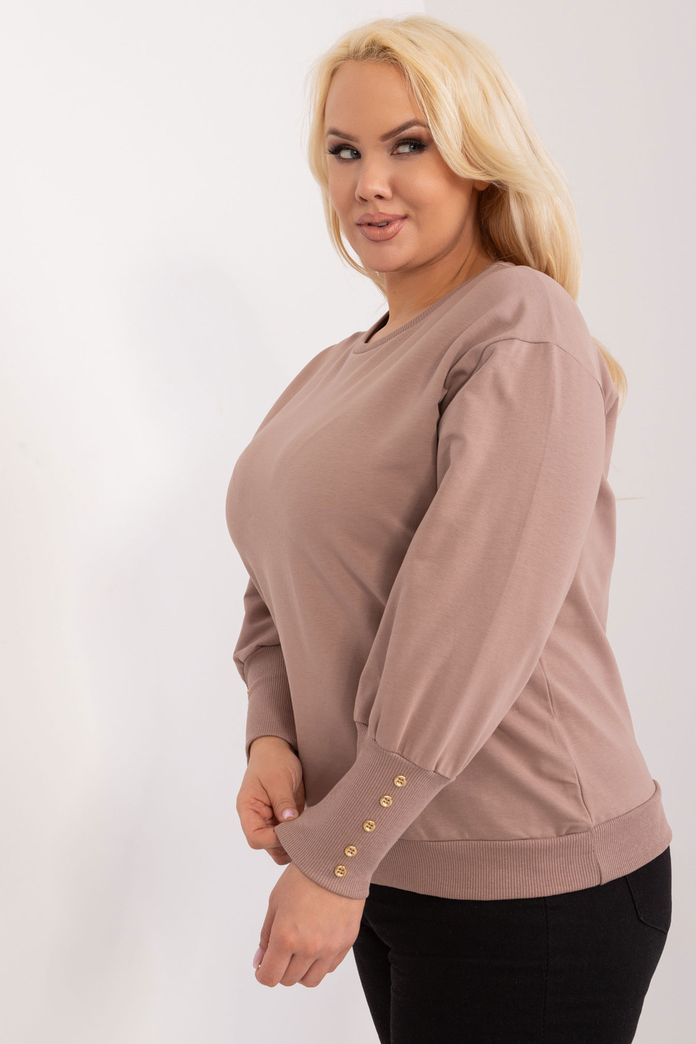 Vieno dydžio megztinio matmenys išmatuoti plokščiai: pažasties plotis - 60 cm, rankovių ilgis - 60 cm, bendras ilgis - 65 cm.