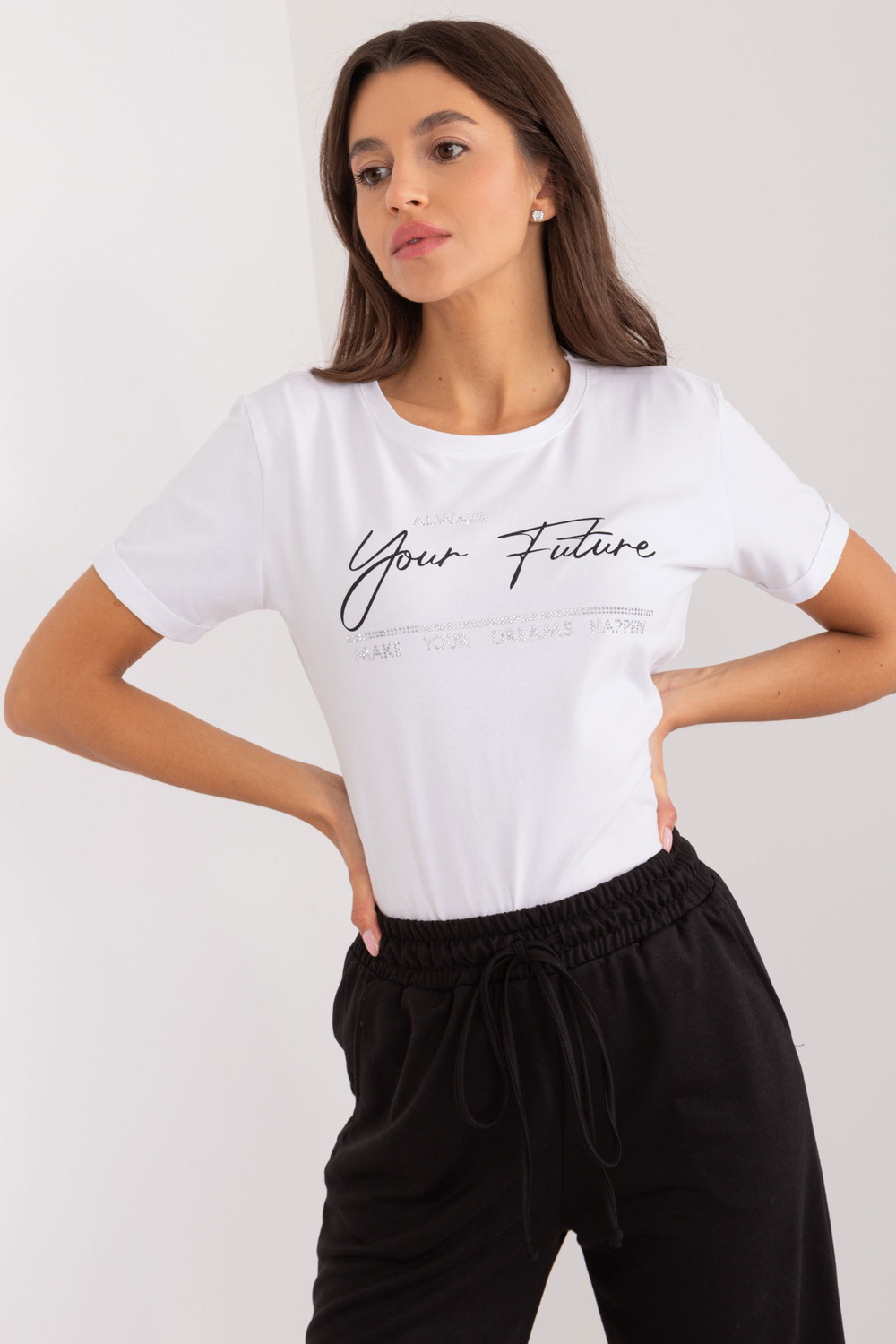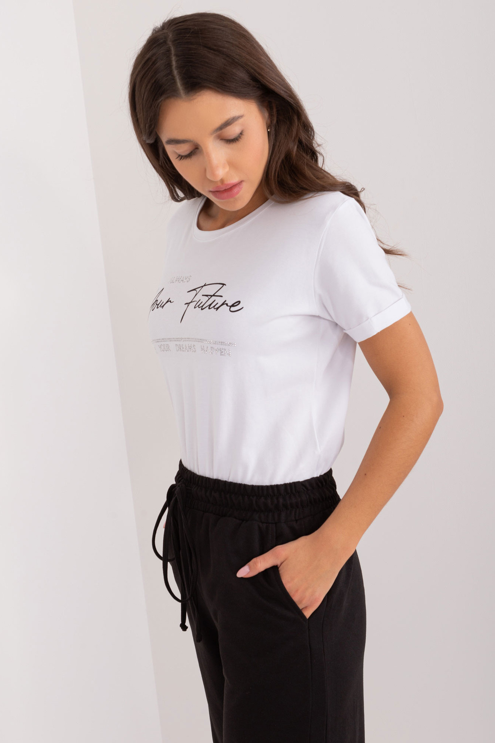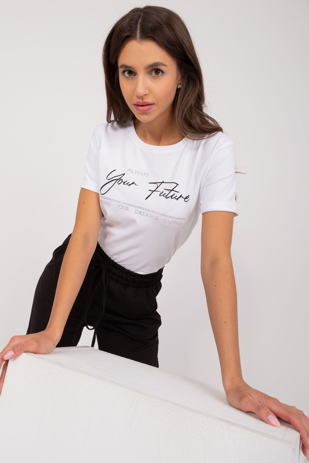 Modelis dėvi vieno dydžio dydį. Modelio išmatavimai: ūgis 172 cm, krūtinė 88 cm, juosmuo 63 cm, klubai 92 cm.