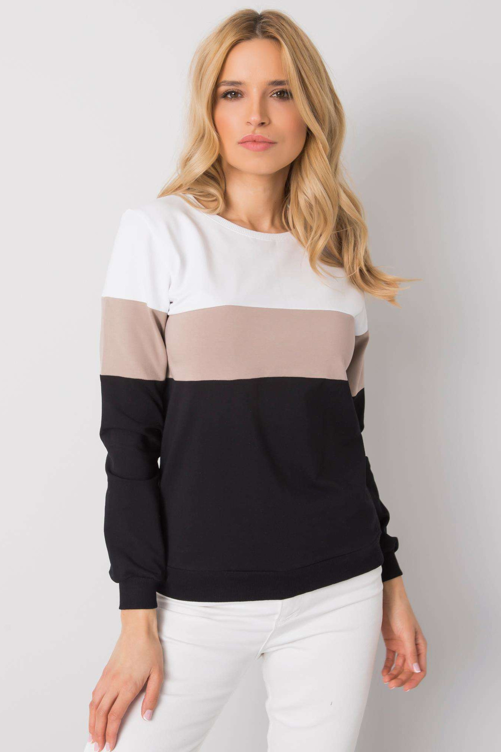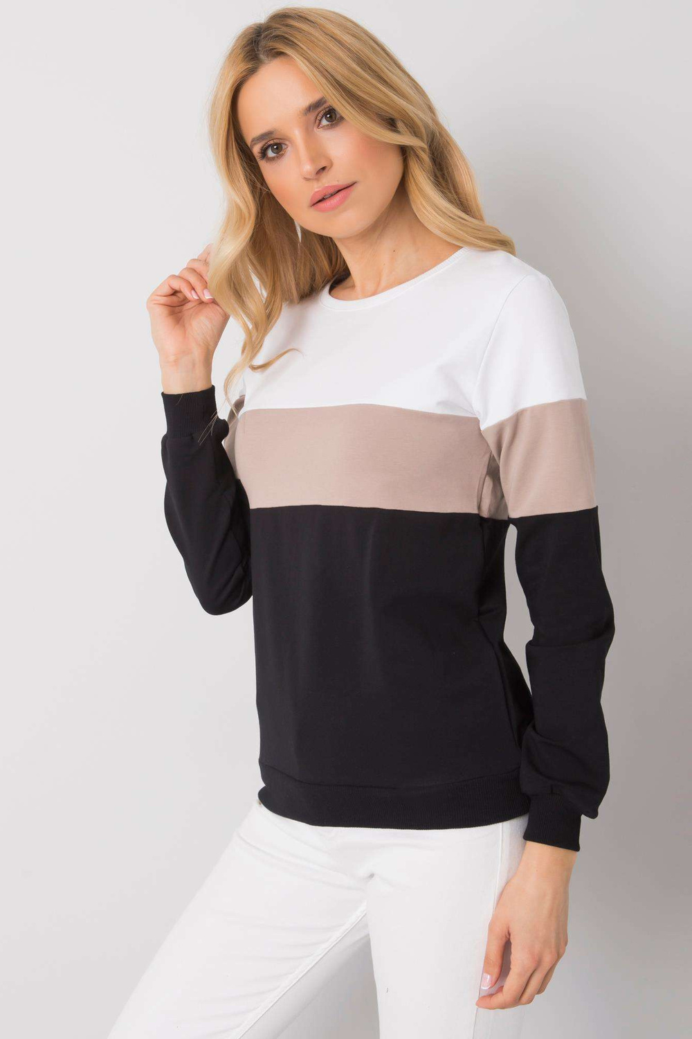 RUE PARIS Juodos ir smėlio spalvos moteriškas megztinis.