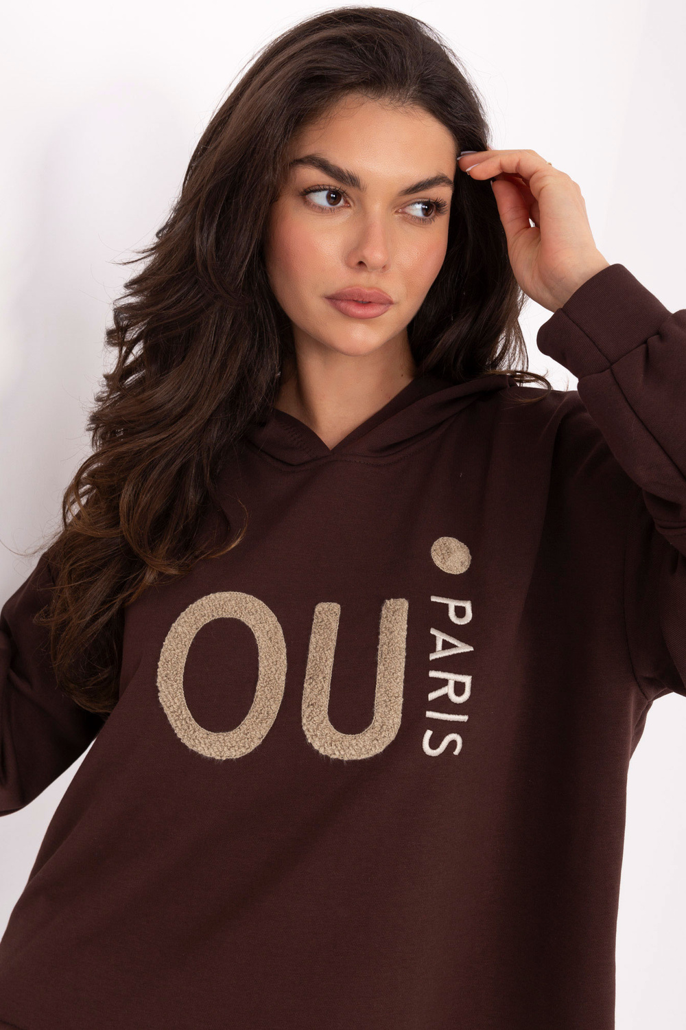 Tamsiai rudas megztinis su gobtuvu