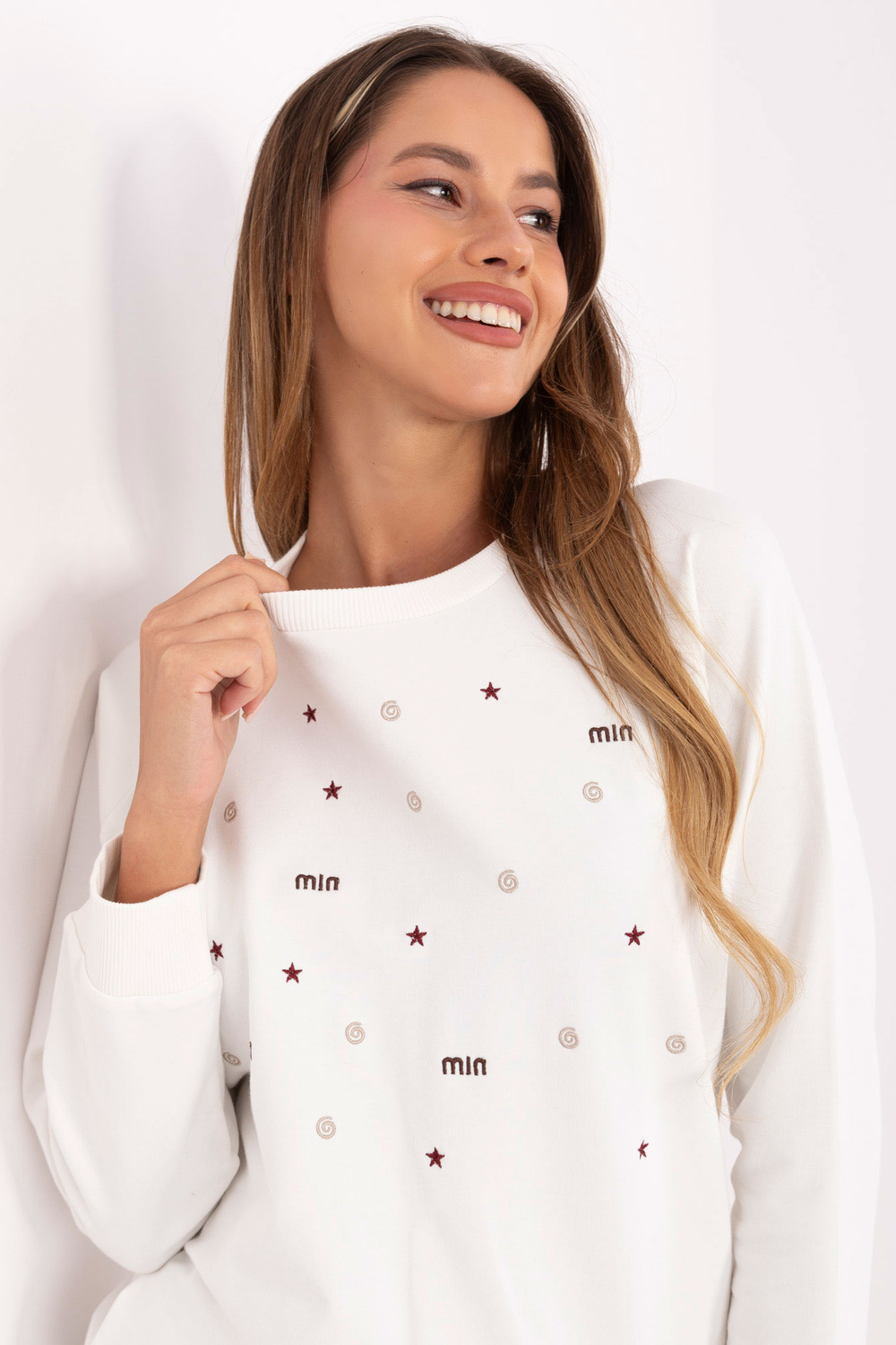 Džemperio vieno dydžio matmenys, matuojant jį padėtą: džemperio plotis po pažastimis - 60 cm, rankovės ilgis - 72 cm (nuo siūlės), plotis klubų srityje - 51 cm, džemperio ilgis - 68 cm (priekis), džemperio ilgis - 74 cm (nugara).